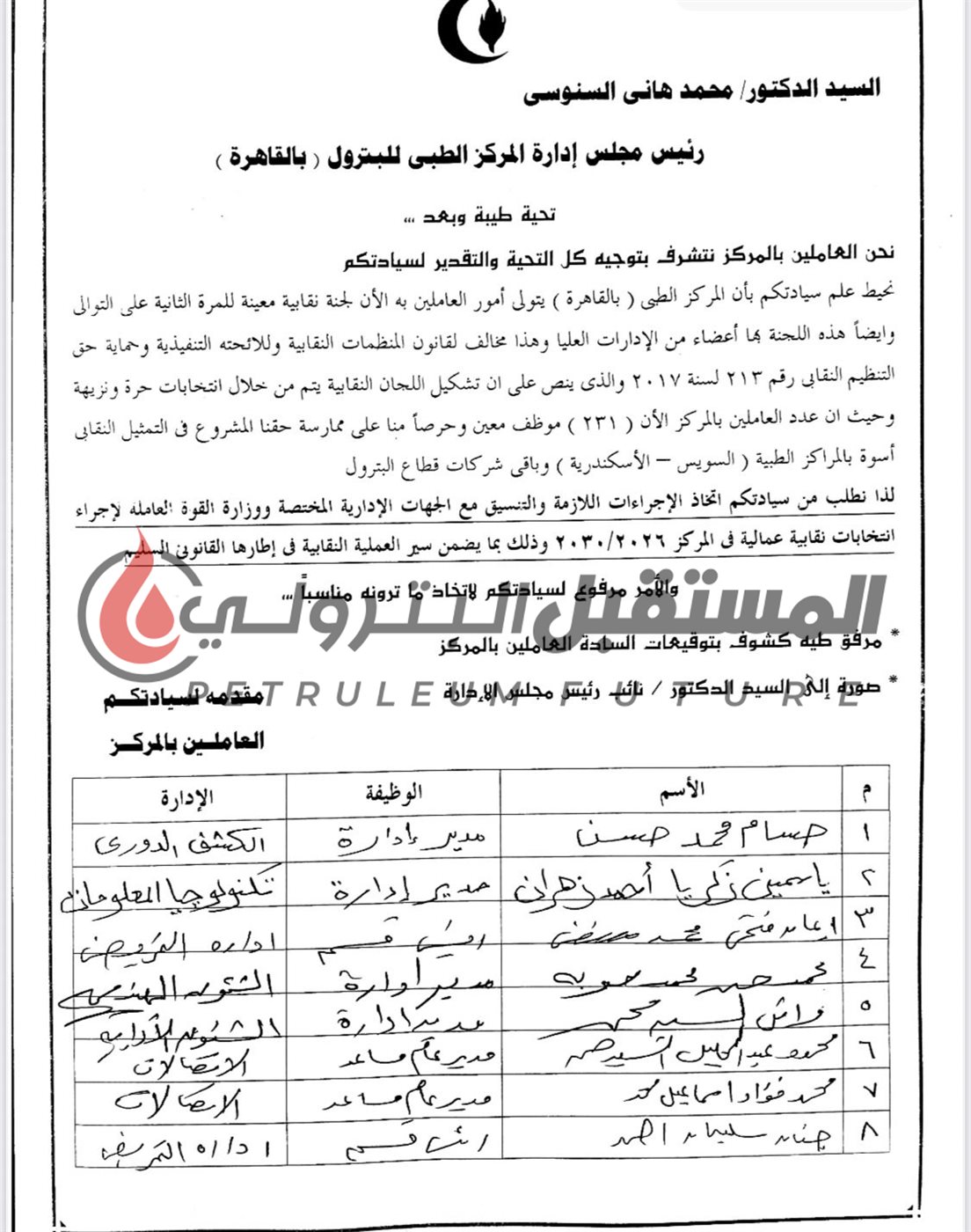 العاملون ناشدوا وزارة البترول والنقابة العامة للبترول التدخل العاجل لوقف ما وصفوه بـ”التعسف الإداري”، وضمان حقهم في انتخاب ممثليهم النقابيين بشكل ديمقراطي، بما يعزز الاستقرار داخل المركز ويحفظ حقوق العاملين.