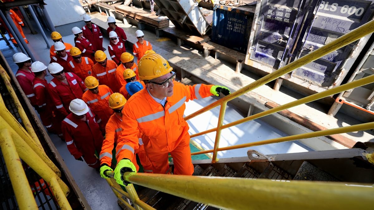 والتقي الوزير مع فريق العمل المسؤول عن إدارة العمليات علي الحفار ، مثمنًا الجهود المبذولة لرفع كفاءة التشغيل.