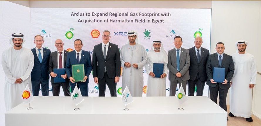 وقّع كل من المهندس كريم بدوي، وزير البترول المصري، وسلطان الجابر، وزير الصناعة والتكنولوجيا المتقدمة في الإمارات والعضو المنتدب الرئيس التنفيذي لشركة أدنوك، اتفاقية الاستحواذ بين الشركة المصرية القابضة للغازات الطبيعية “إيجاس” وشركة أركيوس، إلى جانب شركتي شل وبي بي. بموجب الاتفاق، انتقلت حقوق الإنتاج والاستغلال كاملةً إلى أركيوس في منطقة «البرج» البحرية بالبحر المتوسط.