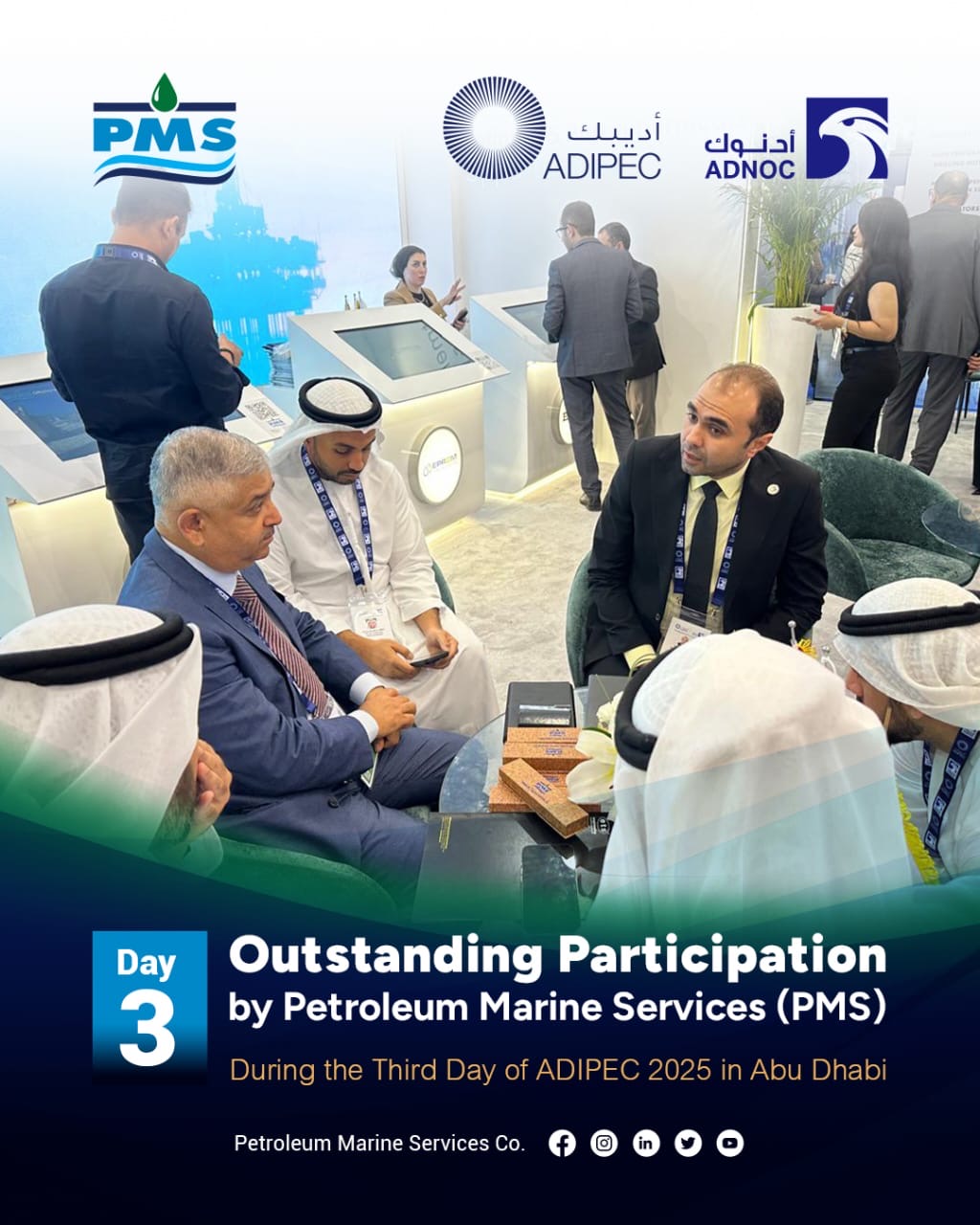 وفي إطار خطتها التوسعية لتعزيز حضورها الإقليمي والدولي، عقدت PMS لقاءً مع ممثلي شركة أدنوك الإماراتية، جرى خلاله بحث سبل التعاون والشراكات الاستراتيجية المستقبلية داخل دولة الإمارات، وذلك في ضوء سعي الشركة لافتتاح فرع جديد لها في الدولة لدعم توسعها في مشروعات الطاقة والبنية التحتية البحرية، وتعزيز تواجدها في الأسواق الخليجية.