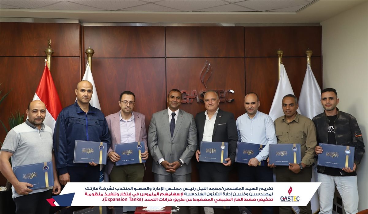 وقام السيد المهندس/محمد النيل رئيس مجلس الإدارة والعضو المنتدب لشركة غازتك بتكريم السيد المهندس/شريف ياسين مدير عام الشئون الهندسية وفريق العمل من المهندسين والفنيين الذين قاموا بابتكار وتنفيذ هذه المنظومة المتطورة والذى يأتى في إطار رؤية الشركة الطموحة في توفير وتطوير حلول الطاقة المستدامة لوسائل النقل والمنشآت الصناعية المختلفة.