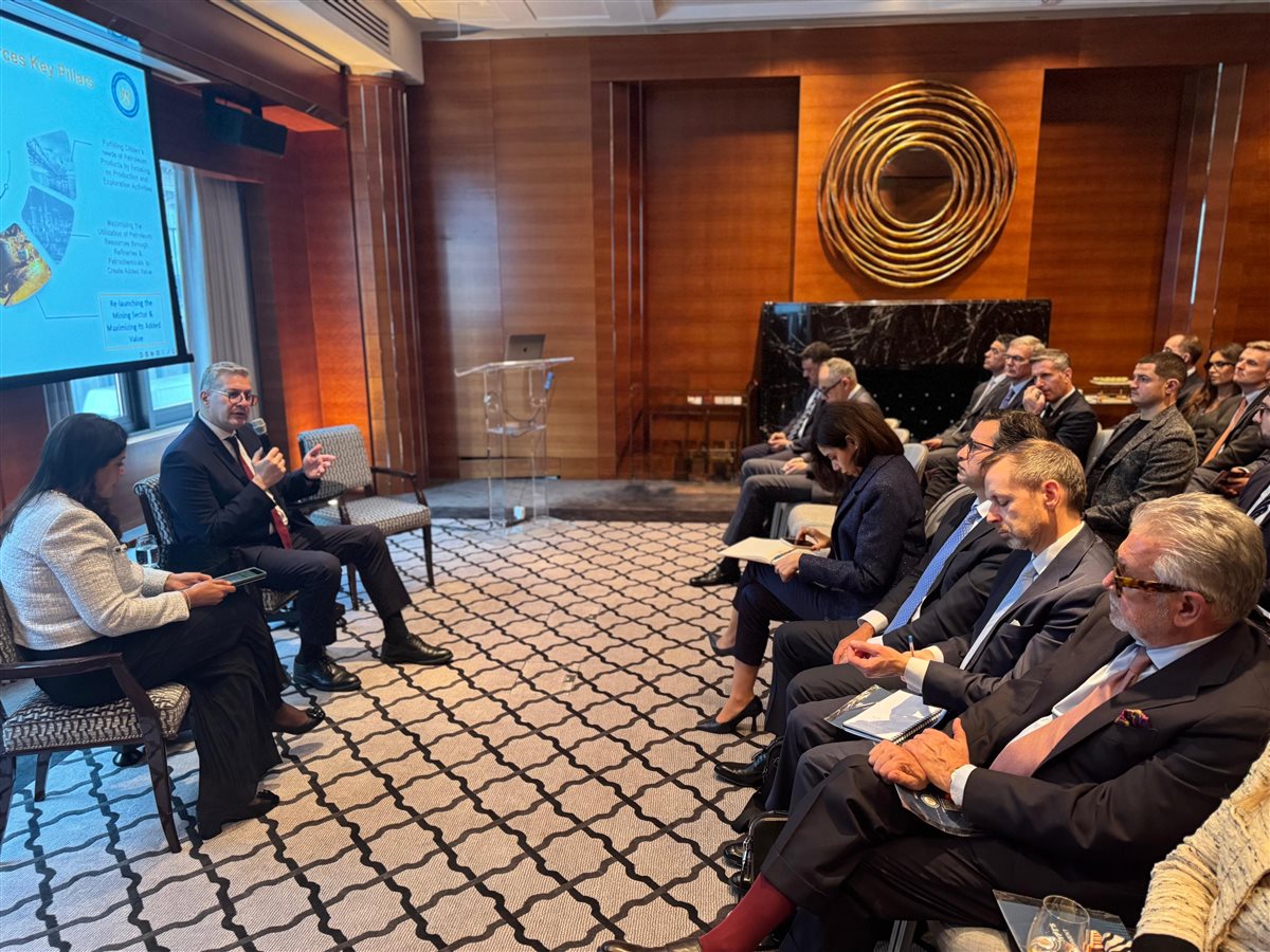 واستهل الوزير الزيارة بجلسة حوارية بعنوان «الفرص التعدينية غير المستغلة والاكتشافات التجارية الجديدة»، أدارتها المهندسة هدى منصور العضو المنتدب ونائب رئيس شركة السكري لمناجم الذهب عن شركة أنجلوجولد أشانتي العالمية، وذلك بحضور مسئولي نحو 30 من شركات التعدين والبنوك الأوروبية والمؤسسات المالية والاستشارية.
