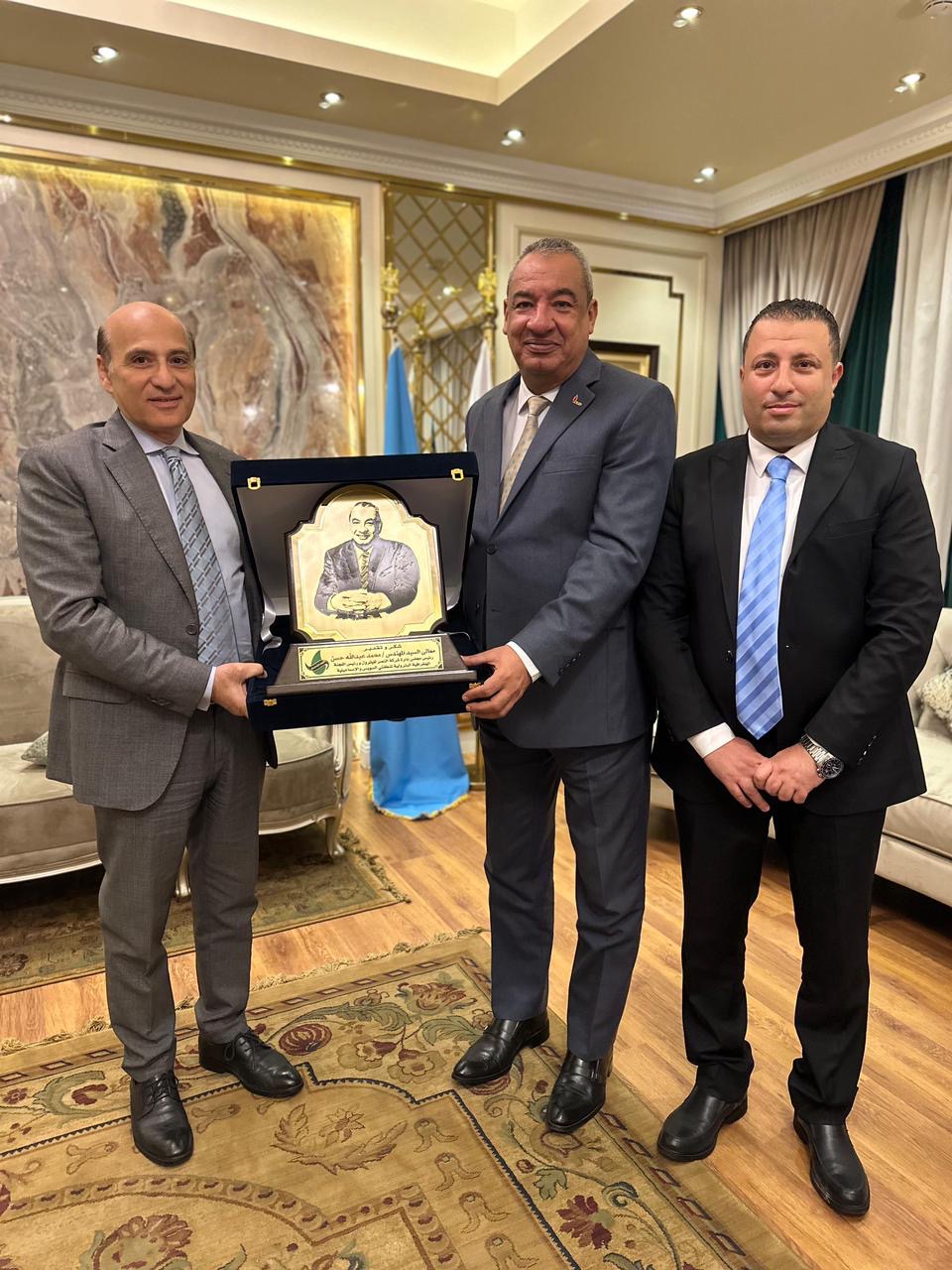قام الدكتور وسيم وهدان رئيس مجلس ادارة شركة الخدمات التجارية البترولية " بتروتريد " بتكريم المهندس محمد عبدالله حسن رئيس مجلس ادارة شركة النصر للبترول ورئيس المنطقة الجغرافية البترولية لمنطقتي السويس والإسماعيلية وذلك بمناسبة بلوغه قمة العطاء الوظيفى .