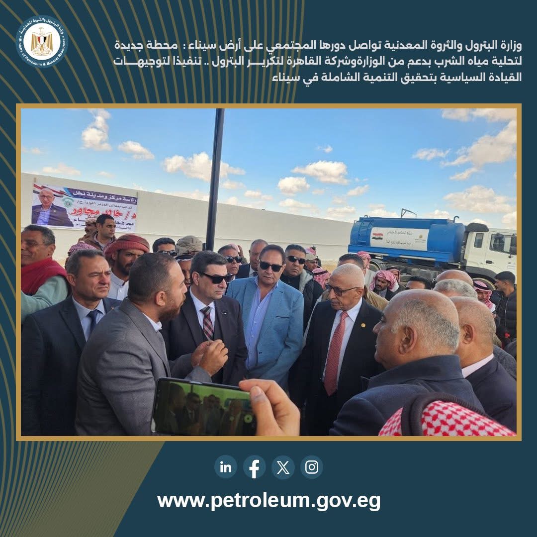 المحطة الجديدة تأتي في إطار استراتيجية وزارة البترول والثروة المعدنية للمساهمة في التنمية المجتمعية بمختلف محافظات مصر وتنفيذا لتوجيهات القيادة السياسية بتحقيق التنمية الشاملة في سيناء ، حيث جري إقامتها بمبادرة من شركة القاهرة لتكرير البترول و بالتعاون مع محافظة شمال سيناء وشركة مياه الشرب بالمحافظة، بعد تقييم احتياجات القرية والقرى المجاورة بما يهدف لتوافر مياه شرب نظيفة وبشكل مستدام ، ودعم الزراعة وتحسين جودة الحياة .