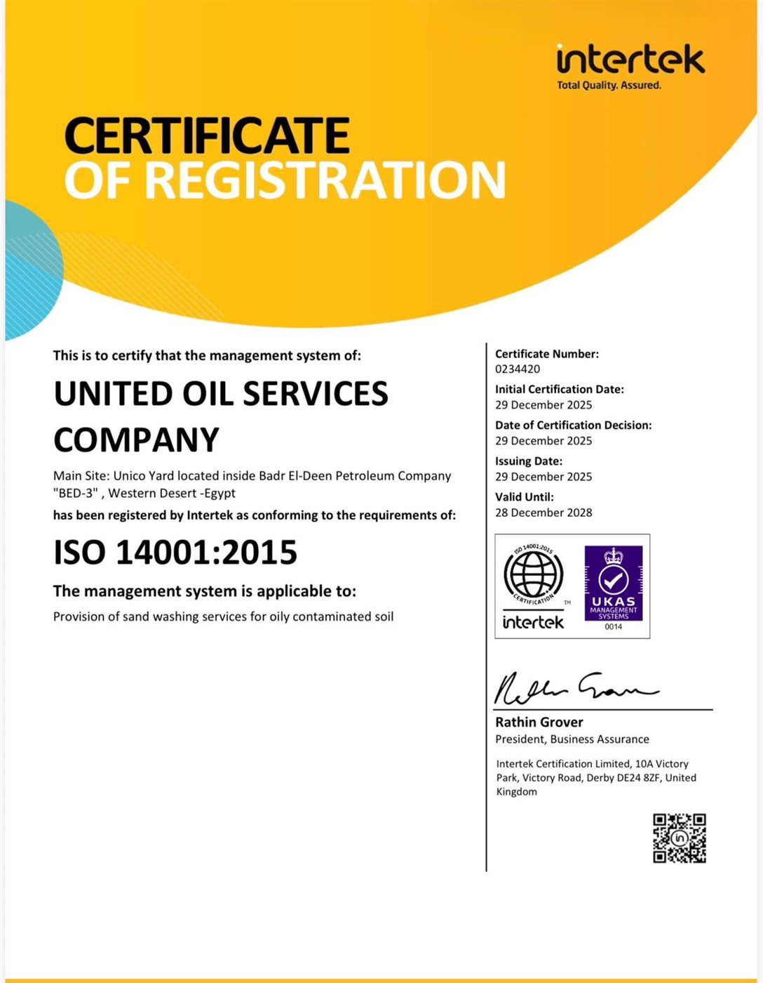 يونيكو تحصل على الأيزو لمشروع معالجة الرمال الملوثة بالصحراء الغربية