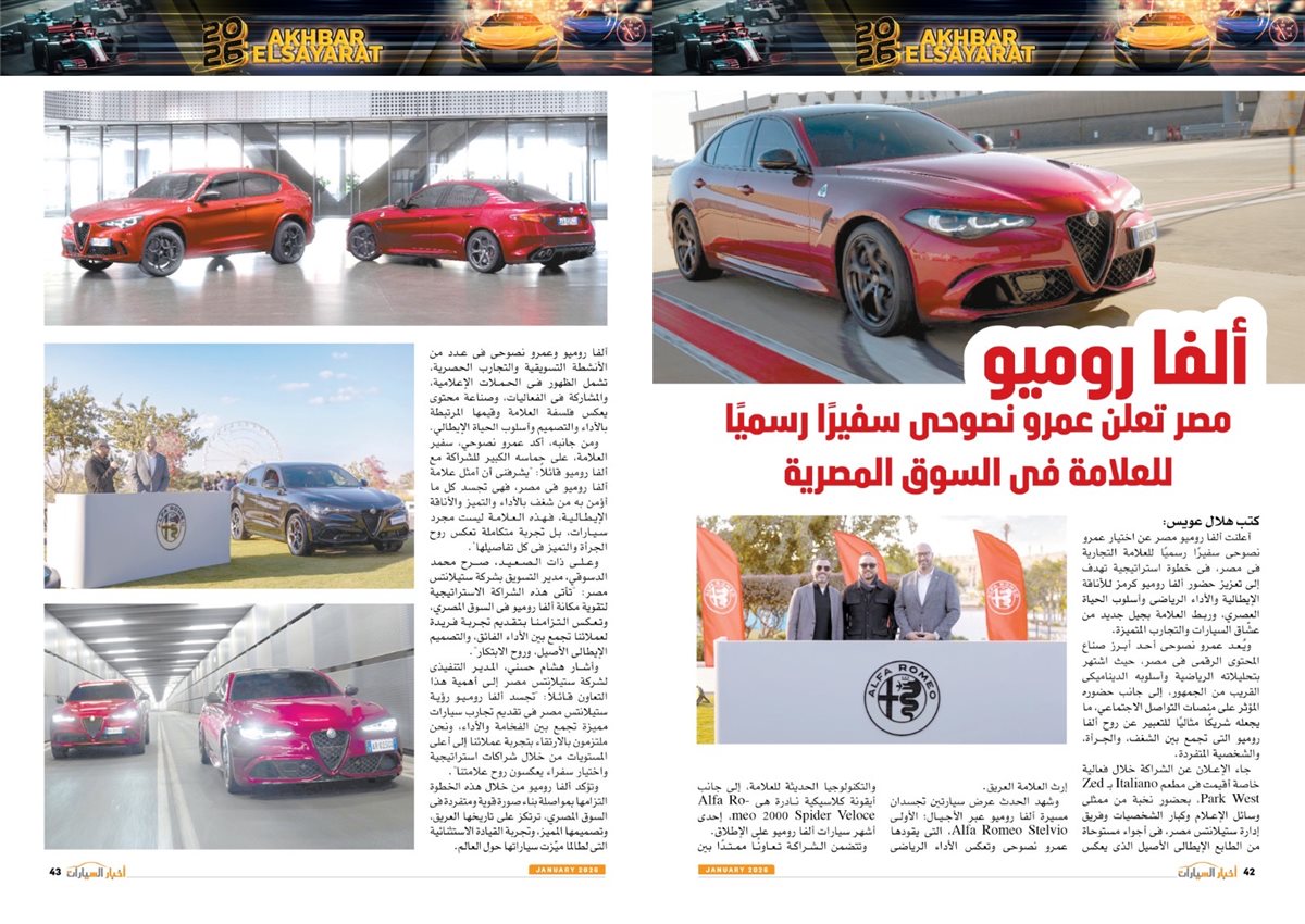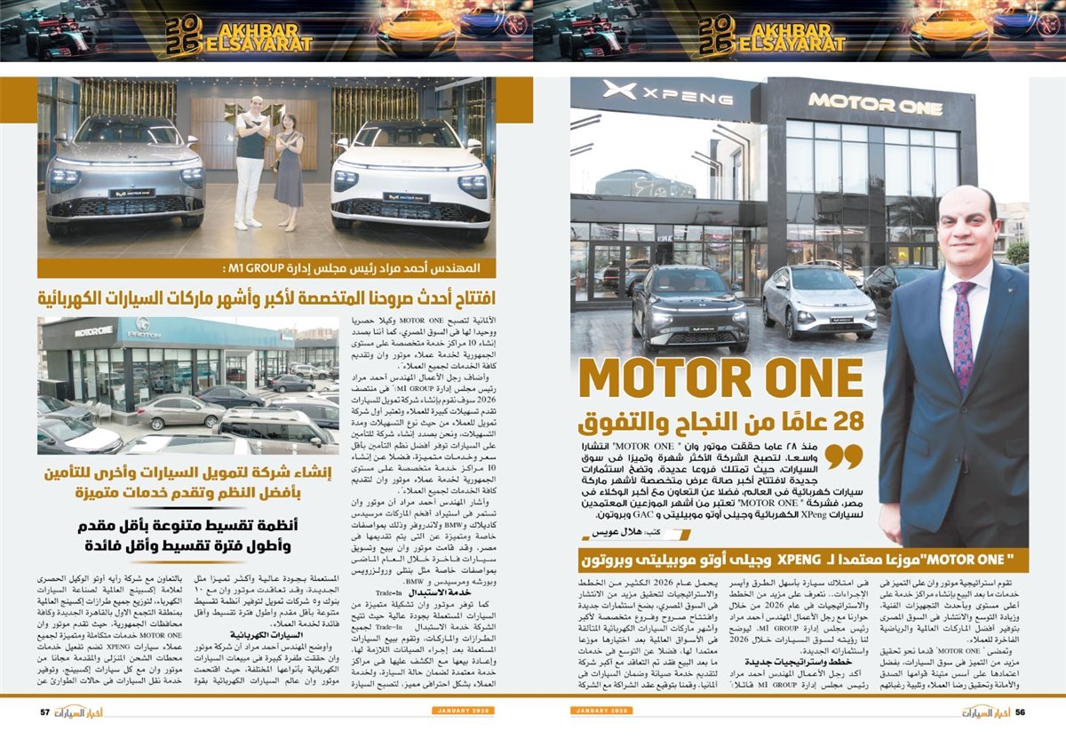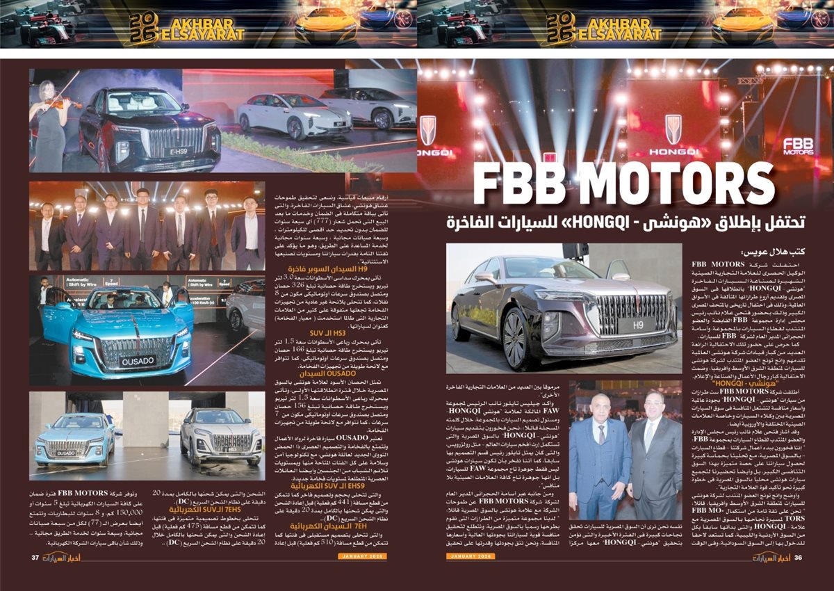 وضم العدد أيضًا تقارير بعنوان قصراوي جروب تبدأ فضلا جديدا في التحول للسيارات الكهربائية الفاخرة، MANEAST ترسخ مكانة SOUEAST وتحقق المركز الخامس فى المبيعات، FBB MOTORS تحتفل بإطلاق «هونشى - »HONGQI للسيارات الفاخرة، ألفا روميو مصر تعلن عمرو نصوحى سفيرًا رسميًا للعلامة فى السوق المصرية، Astra.. تصميم أكثر عصرية من أوبل، شل للزيوت مصر وحسن علام القابضة شراكة استرتيجية لمدة 5 سنوات، motor one 28 عاما من النجاح والتفوق، بودى جروب تعلن مرحلة الانطلاقة الكبرى فى 2026.