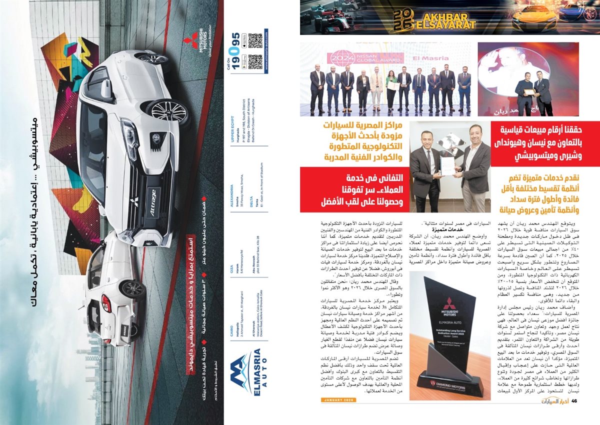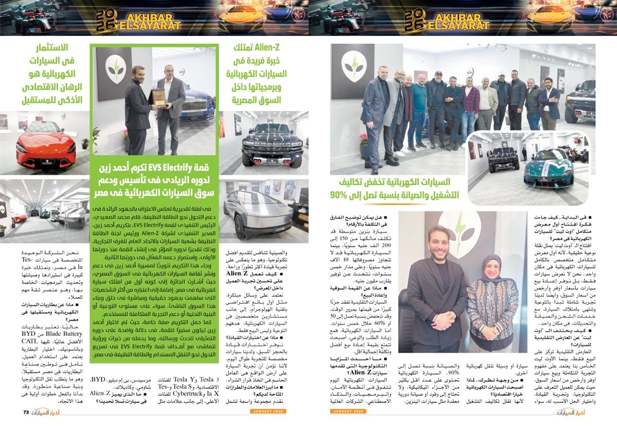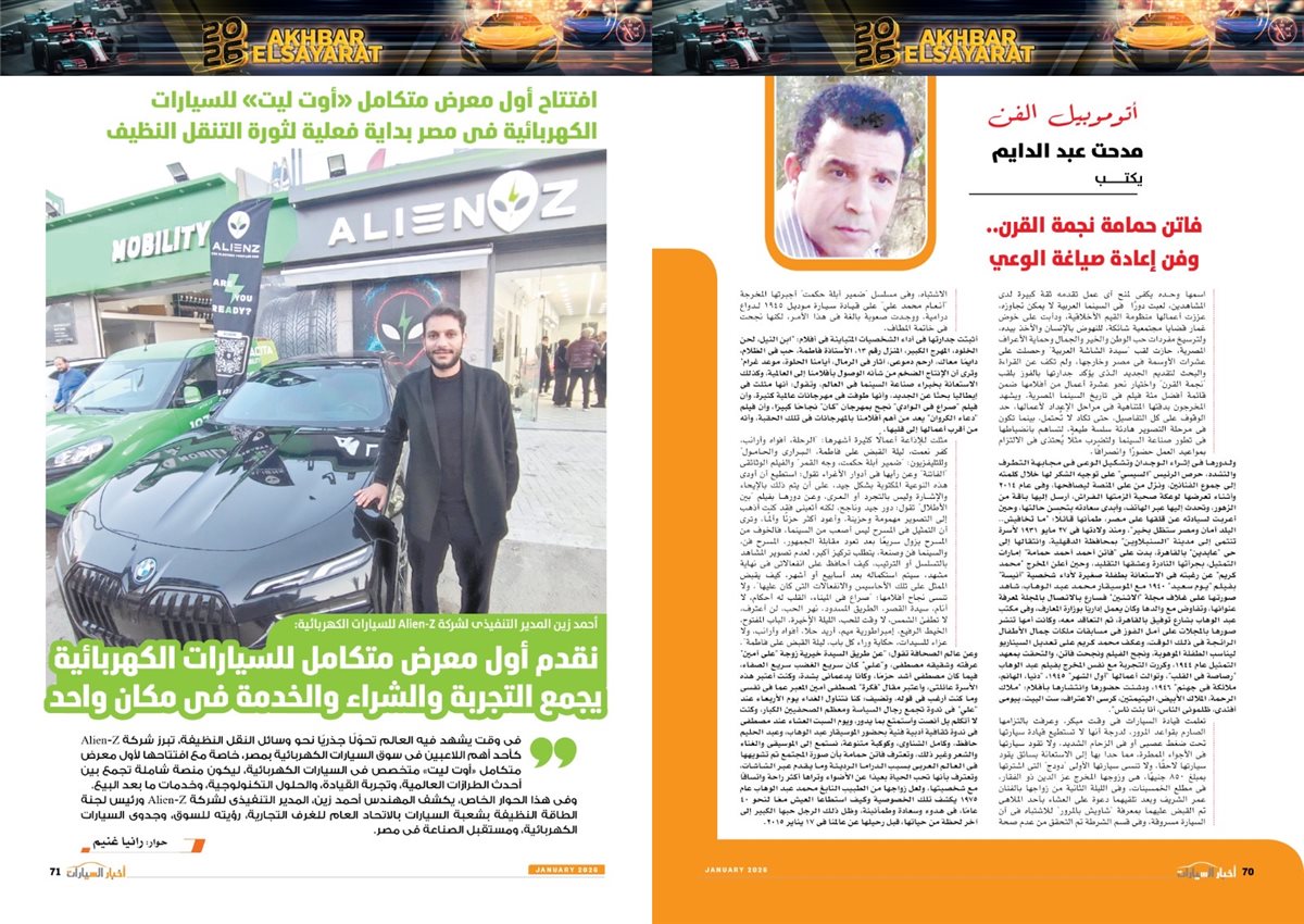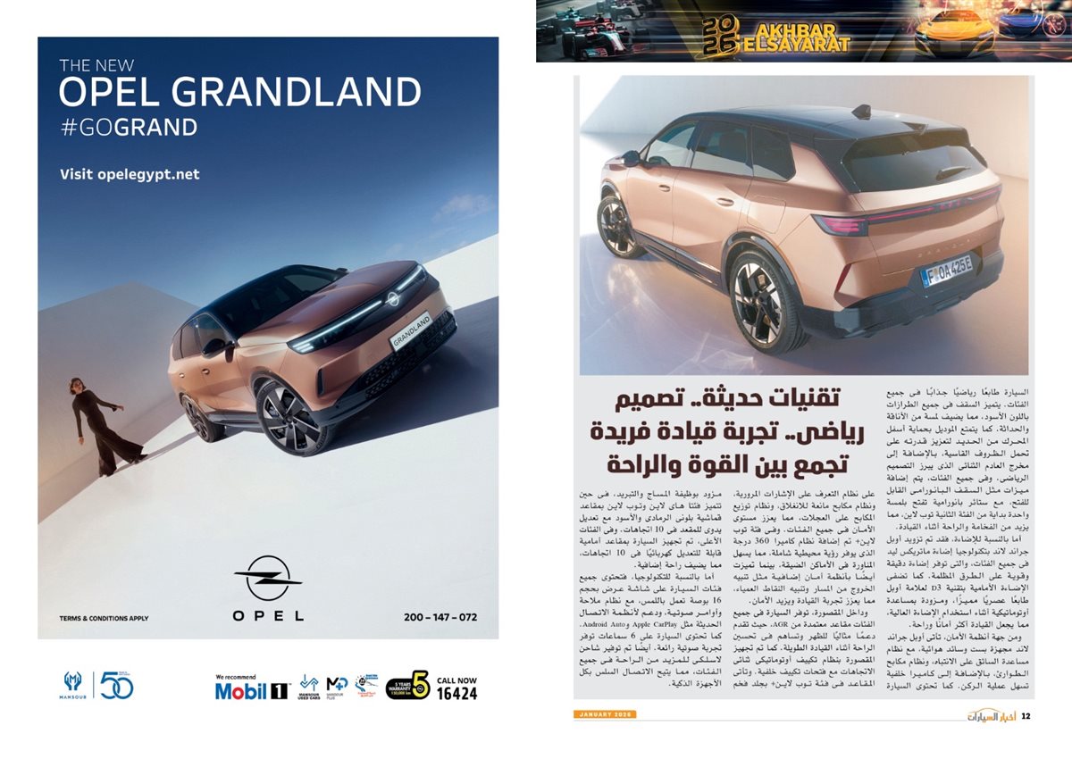 وضم العدد أيضًا تقارير بعنوان قصراوي جروب تبدأ فضلا جديدا في التحول للسيارات الكهربائية الفاخرة، MANEAST ترسخ مكانة SOUEAST وتحقق المركز الخامس فى المبيعات، FBB MOTORS تحتفل بإطلاق «هونشى - »HONGQI للسيارات الفاخرة، ألفا روميو مصر تعلن عمرو نصوحى سفيرًا رسميًا للعلامة فى السوق المصرية، Astra.. تصميم أكثر عصرية من أوبل، شل للزيوت مصر وحسن علام القابضة شراكة استرتيجية لمدة 5 سنوات، motor one 28 عاما من النجاح والتفوق، بودى جروب تعلن مرحلة الانطلاقة الكبرى فى 2026.