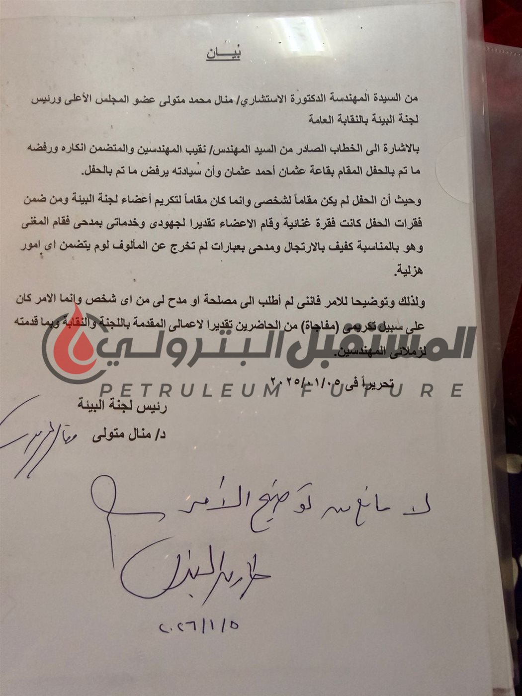 وشدد البيان على احترام اللجنة الكامل لحق إبداء الرأي والنقد الموضوعي، مع رفضها القاطع لأي إساءة أو تأويل مغرض أو محاولة للنيل من العمل النقابي والمؤسسي، خاصة بعد أن تم توضيح الأمر بشكل كامل ونهائي.