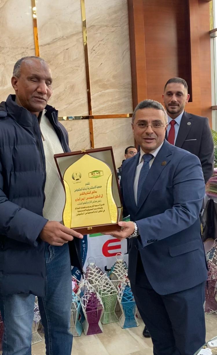 وفي لفتة تقديرية، قامت جمعية الإسكندرية لرعاية المكفوفين بتقديم درع شكر وتقدير إلى الدكتور المهندس أيمن الجارم، تقديرًا لدعمه ومساهمته المتميزة والفعالة في تفعيل دور المسئولية المجتمعية، وتمكين أبناء الجمعية، بما يعكس التزام شركة إيلاب بدورها الإنساني والمجتمعي إلى جانب دورها الاقتصادي والصناعي.