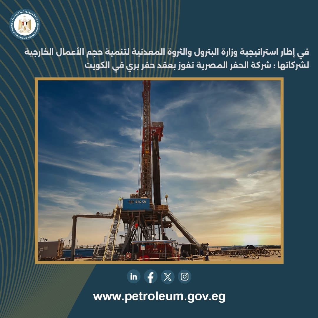 في إنجاز يُعد الأول من نوعه، نجحت شركة الحفر المصرية في الفوز بعقد مع شركة نفط الكويت، في خطوة تعكس تنامي الحضور المصري في الأسواق النفطية الإقليمية، وتعزز من قدرة الشركات الوطنية على المنافسة في كبرى المشروعات بقطاع الطاقة.