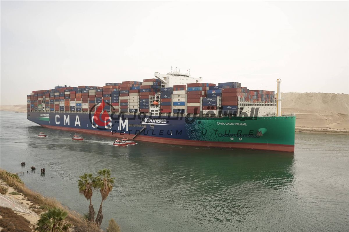 قناة السويس تشهد عبور سفينة الحاويات العملاقة CMA CGM SEINE فى رحلتها الأولى بحمولة 250 ألف طن