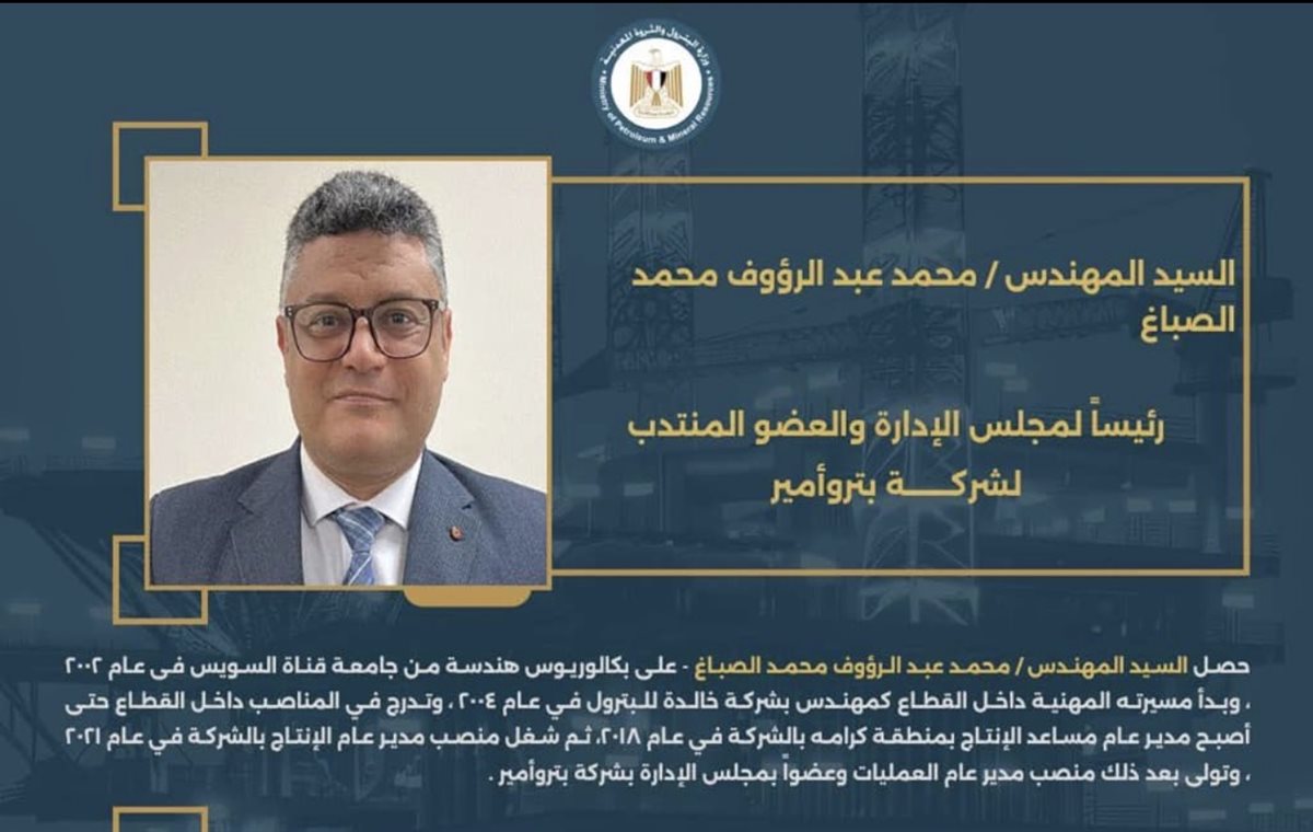 محمد عبدالرؤوف رئيساً لشركة بتروأمير الأحد 01/فبراير/2026 - 04:18 م 2/1/2026 4:18:37 PM 317 شارك شارك