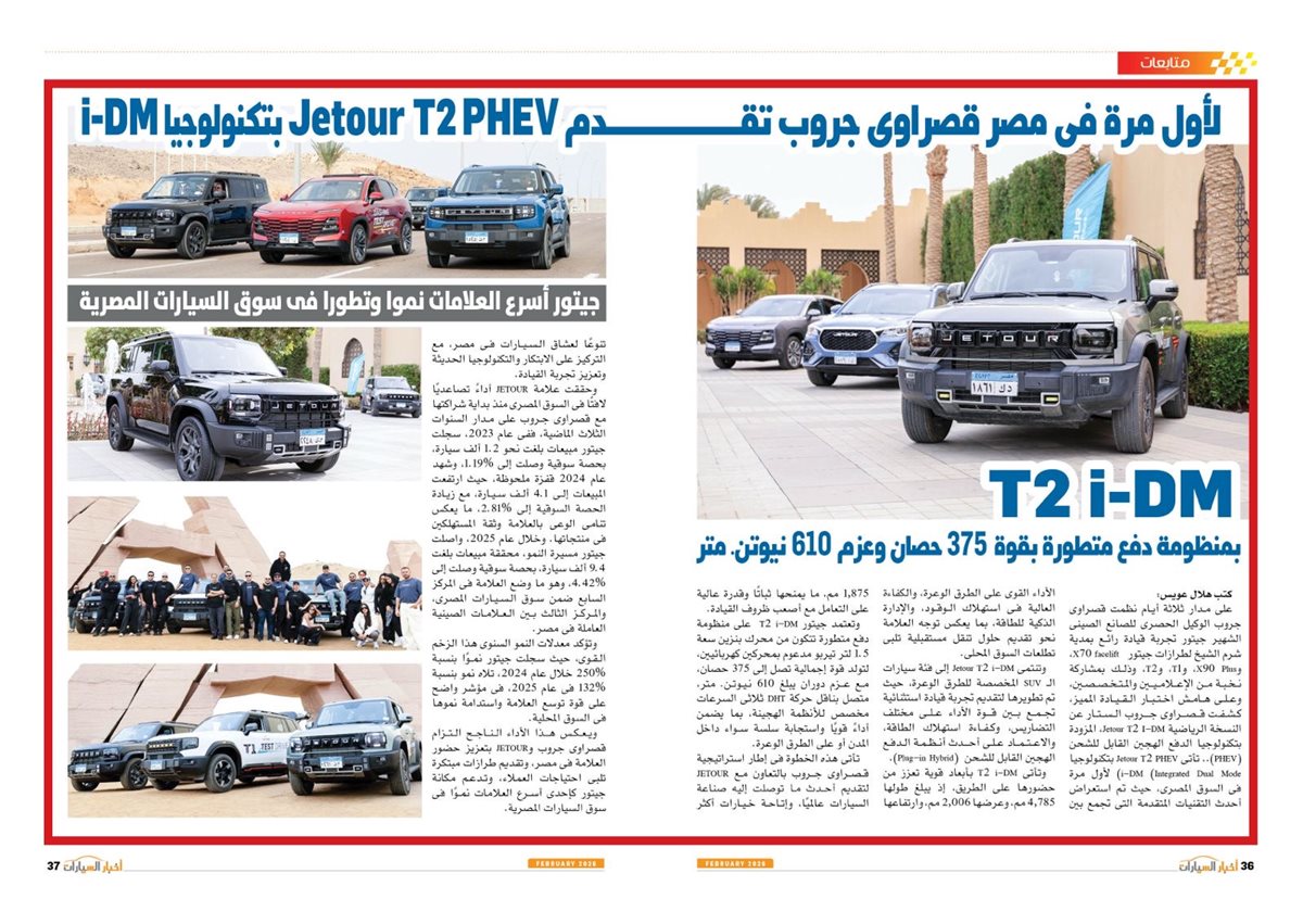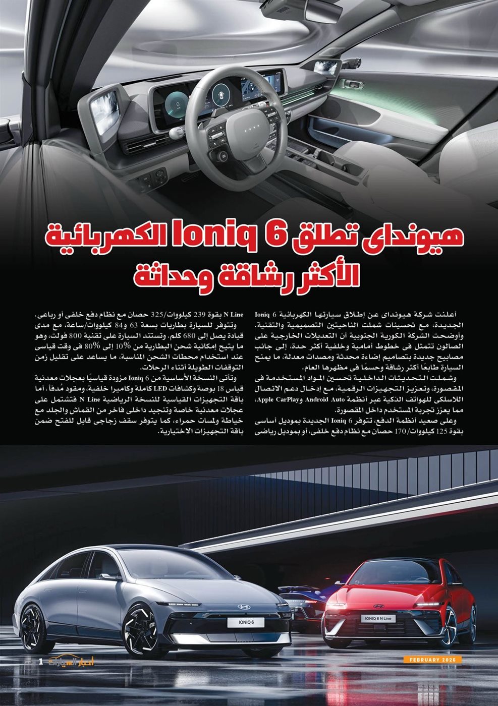 وضم العدد مجموعة من التقارير منها رينو فيلانتي.. الفخامة بمفهومها الكامل، هيونداي تطلق Ioniq 6 الكهربائية.. الأكثر رشاقة وحداثة، برونكو RTR من فورد.. تصميم جريء وقدرات عالية، ثورة النقل الكهربائى، استعادة الثقة، مرسيدس S-Class موديل 2027 مفاجأة لعشاق الفخامة، روشتة الأمان في رمضان، «نصر »EV .. بين أهرامات الجيزة، انطلاق معرض «أوتومورو» للسيارات.. 5 فبراير، وHilux من تويوتا.. قدرات عالية على الطرق الوعرة.