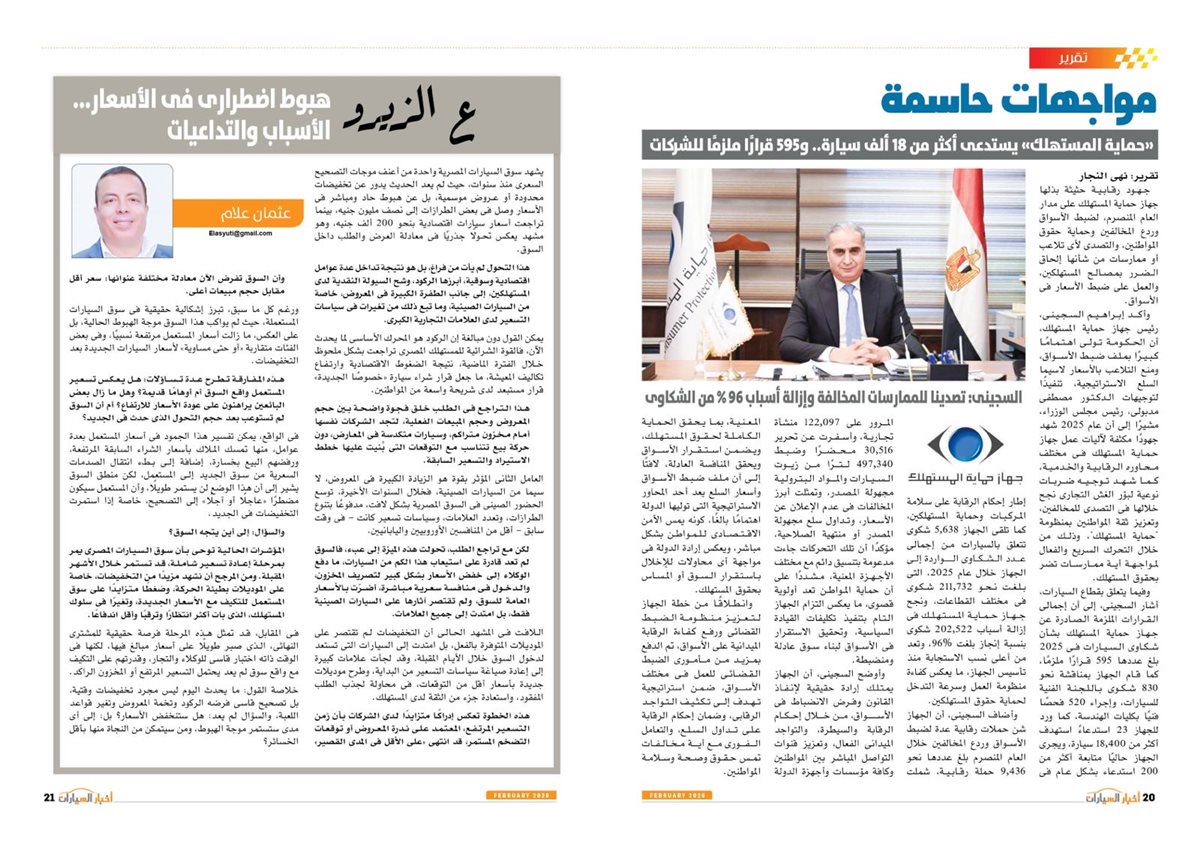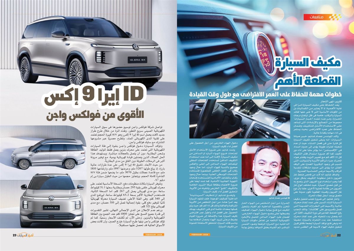 كما ضم العدد تقارير بعنوان «حماية المستهلك» يستدعى أكثر من 18 ألف سيارة.. و 595 قرارًا ملزمًا للشركات، مكيف السيارة.. القطعة الأهم، ID إيرا 9 إكس.. الأقوى من فولكس واجن، صراع كبير بين BYD و Tesla للتربع على عرش مبيعات السيارات الكهربائية، K4 سبورتس واجن من كيا.. إبداع على الطريق، انطلاقة السيارات الهجينة، Spring.. قيادة أكثر راحة من داسيا، إعادة ترتيب أوراق، بوجاتي فيرون FKP هوماج.. تصنع التاريخ من جديد، أنظمة الأمان.. ثورة تكنولوجية بالذكاء الاصطناعي، Nebula Next 01.. خارقة بقوة 1900 حصان.