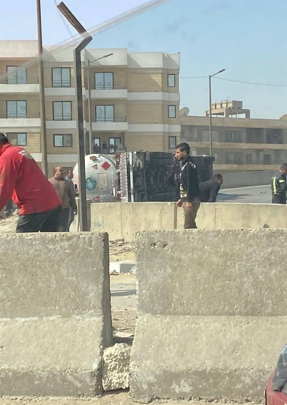 انقلاب سيارة نقل بنزين على مطلع كوبري حسب الله الكفراوي في اتجاه زهراء المعادي
