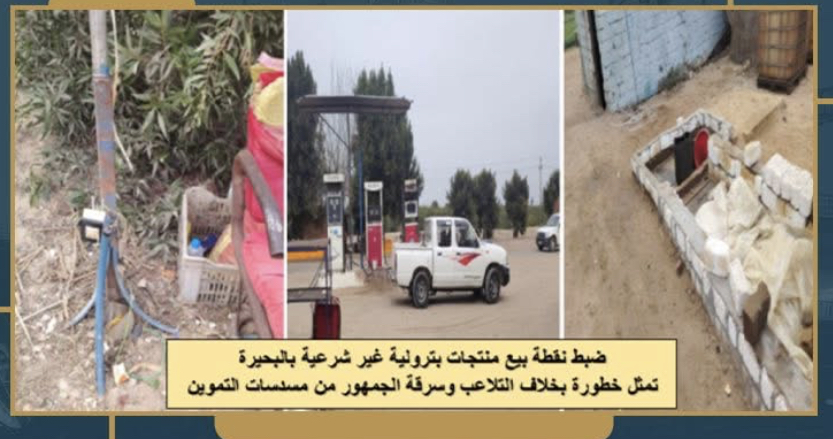 ضبط (3) نقاط بيع غير شرعية بمحافظة البحيرة غير مستوفية لاشتراطات الأمان واحداها تستغل لوجو احدى شركات التسويق بخلاف التلاعب وسرقة الجمهور في كميات الوقود ، وتم اتخاذ الإجراءات القانونية ضدها.