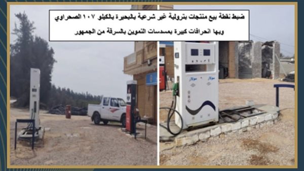 كما تم ضبط عدد (2) نقاط بيع غير شرعية بالكيلو 107 الطريق الصحراوي بمحافظة البحيرة مركز إيتاي البارود إحداهما لا توجد بها آية وسيلة إطفاء والأخرى تتلاعب بمسدسات التموين بغرض سرقة الجمهور ، وتم اتخاذ الإجراءات القانونية ضدهما .