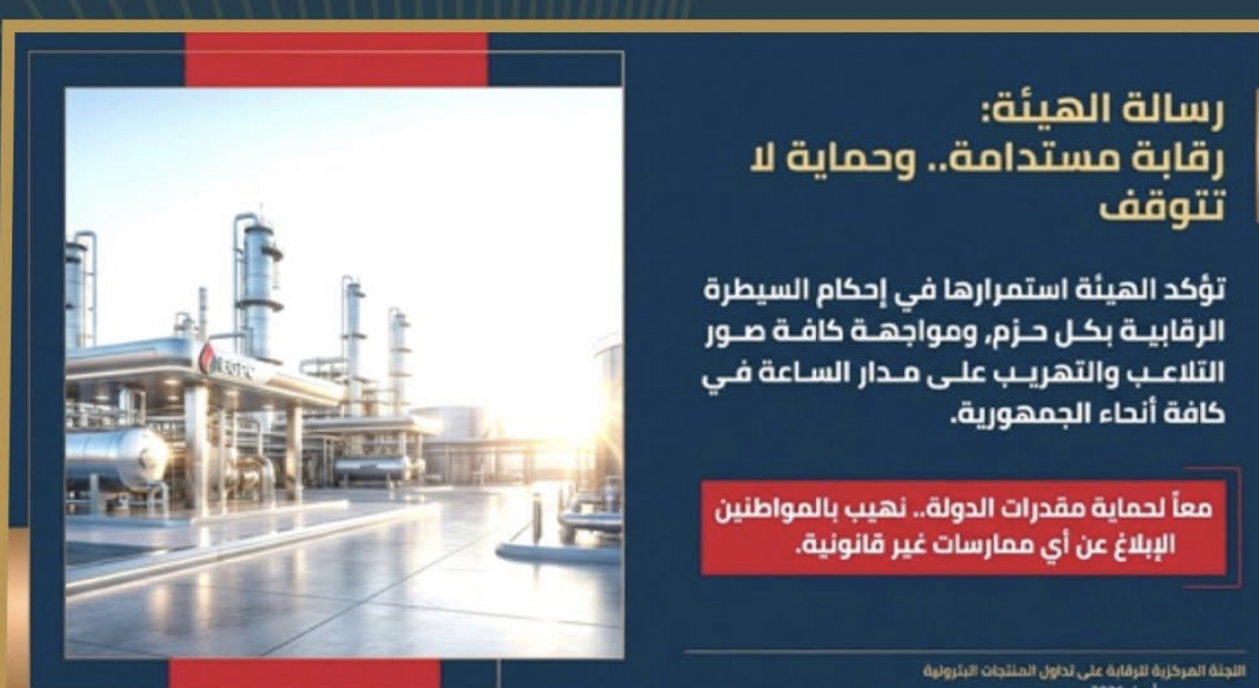 وتؤكد الهيئة المصرية العامة للبترول استمرارها في السيطرة الرقابية الكاملة على منظومة تداول المنتجات البترولية، ومواجهة كافة صور التلاعب والتهريب بكل حزم، بما يحفظ مقدرات الدولة و حقوق المستهلك، مع استمرار الحملات اليومية على مدار الساعة بجميع أنحاء الجمهورية ، كما ناشدت المواطنين سرعة الإبلاغ عن أي ممارسات غير قانونية أو مخالفات تتعلق بتداول المنتجات البترولية .