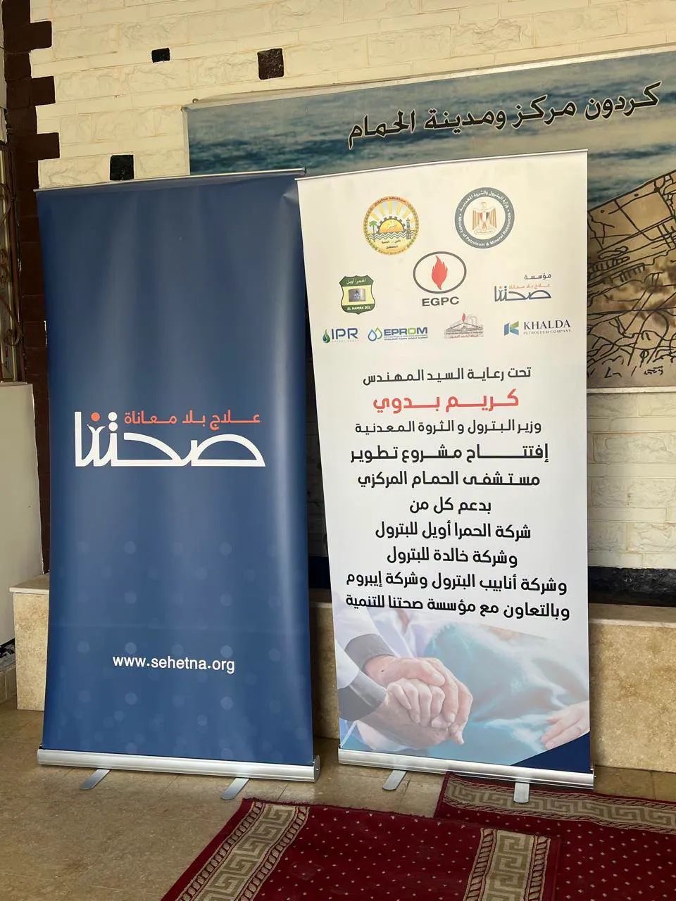 في إطار جهود قطاع البترول المصري لتعزيز الاستدامة وتوحيد مبادرات المسؤولية المجتمعية بين شركاته المختلفة، وتماشيًا مع توجيهات وزارة البترول والثروة المعدنية في دعم التنمية المستدامة، تم افتتاح مستشفى الحمام المركزي بمحافظة مطروح بعد الانتهاء من أعمال تطوير شاملة بلغت تكلفتها نحو 25 مليون جنيه، بهدف رفع كفاءة الخدمات الصحية المقدمة للمواطنين.