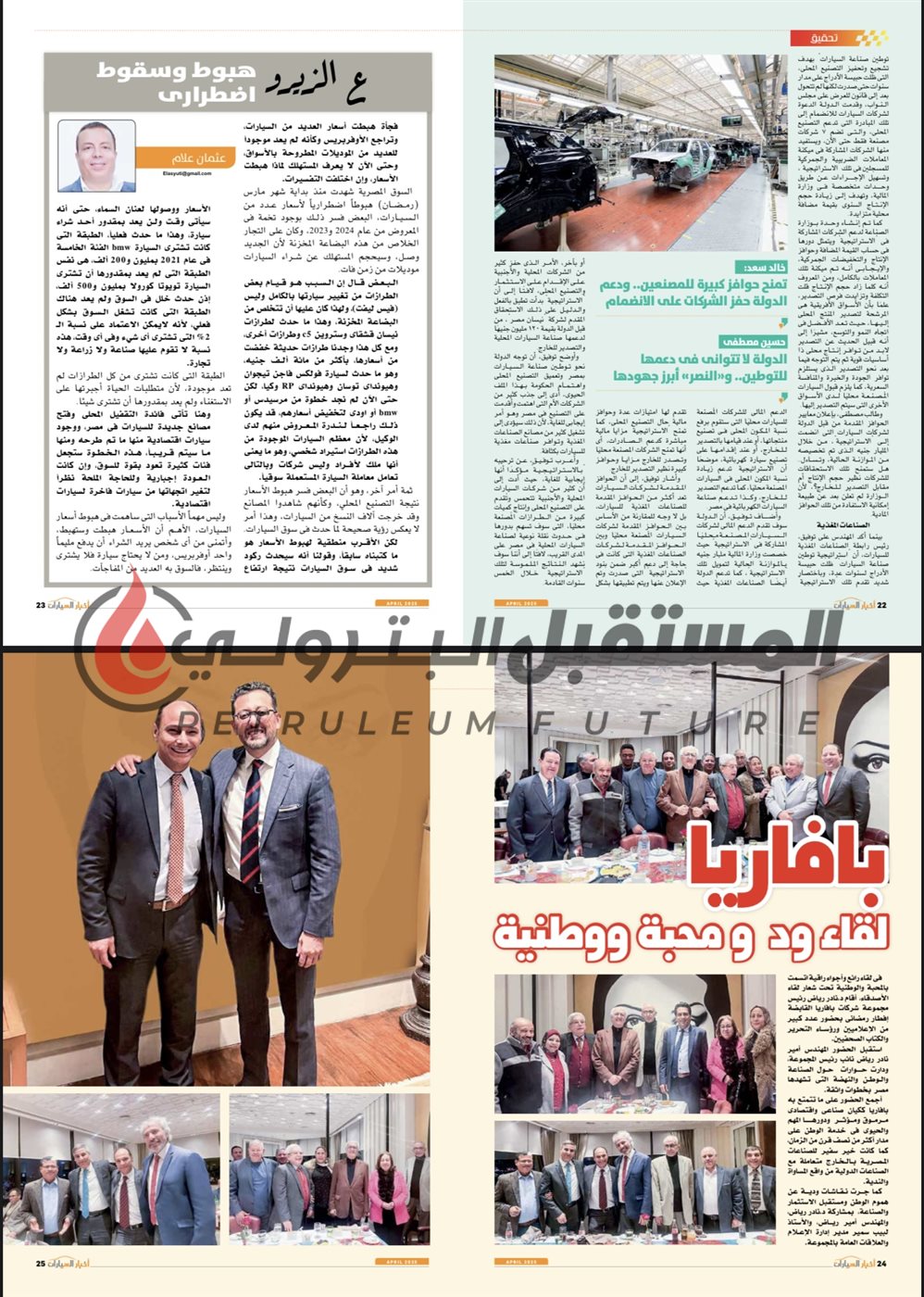 كما يحتوي العدد على حوارات مع جوردى ڤيلا رئيس نيسان إفريقيا، علاء حواش المدير التنفيذى لشركة HERU، وتونى لطيف صانع محتوى خاص بالسيارات الكهربائية.