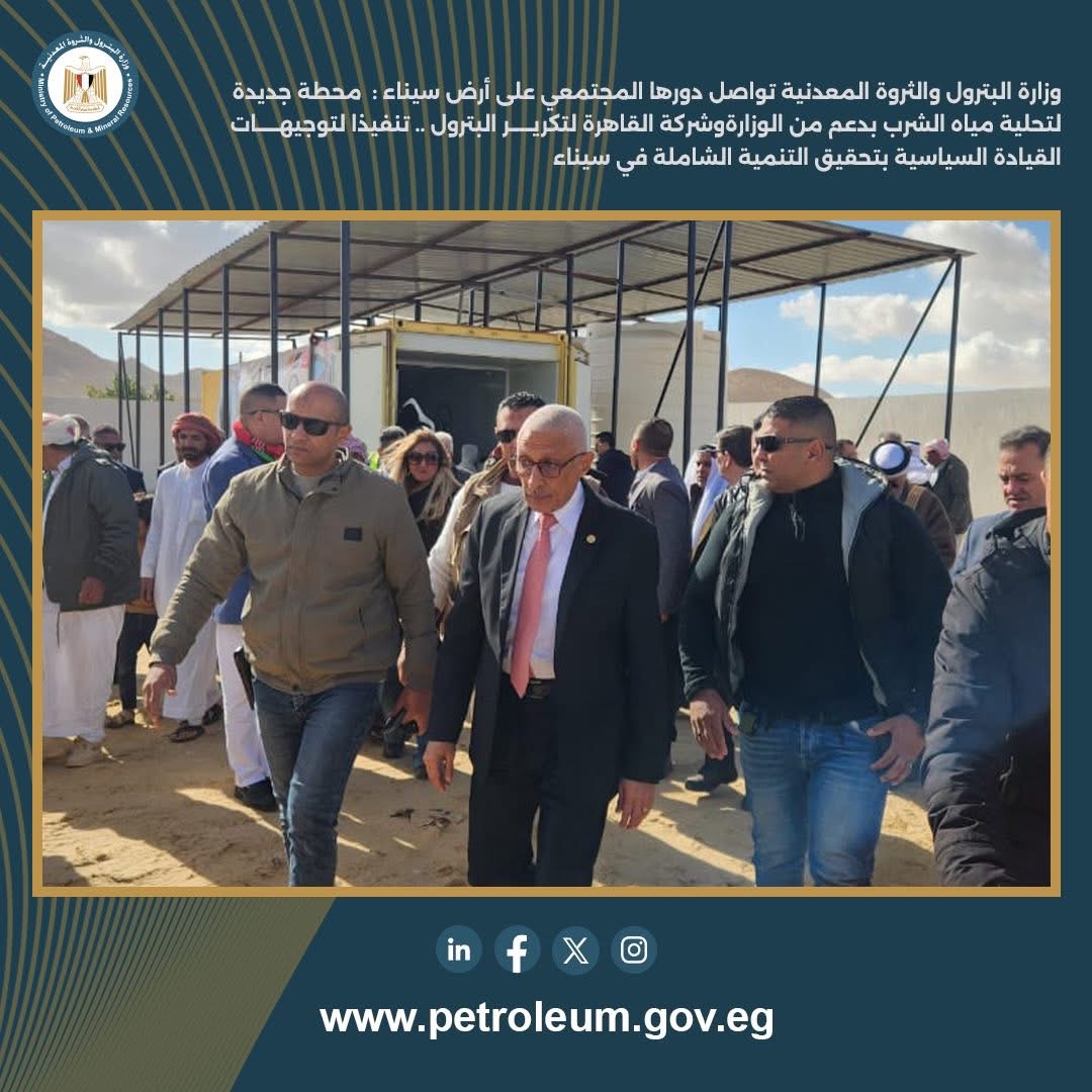 المحطة الجديدة تأتي في إطار استراتيجية وزارة البترول والثروة المعدنية للمساهمة في التنمية المجتمعية بمختلف محافظات مصر وتنفيذا لتوجيهات القيادة السياسية بتحقيق التنمية الشاملة في سيناء ، حيث جري إقامتها بمبادرة من شركة القاهرة لتكرير البترول و بالتعاون مع محافظة شمال سيناء وشركة مياه الشرب بالمحافظة، بعد تقييم احتياجات القرية والقرى المجاورة بما يهدف لتوافر مياه شرب نظيفة وبشكل مستدام ، ودعم الزراعة وتحسين جودة الحياة .