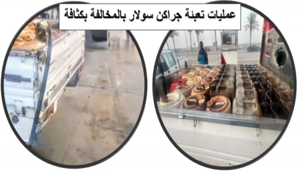 فيما تم ضبط سائق سيارة صهريجية تابعة لأحد مقاولي النقل أثناء سرقة كمية من المنتج البترولي حيازته والموجه لإحدى محطات الوقود وتم تحرير محضر وتغريم المقاول وحظر السائق نهائياً ،وفي الجيزة تم ضبط سيارة صهريجية 8000 لتر تابعة لمحطة ومجهزة بموتور تفريغ للتداول غير الشرعي .