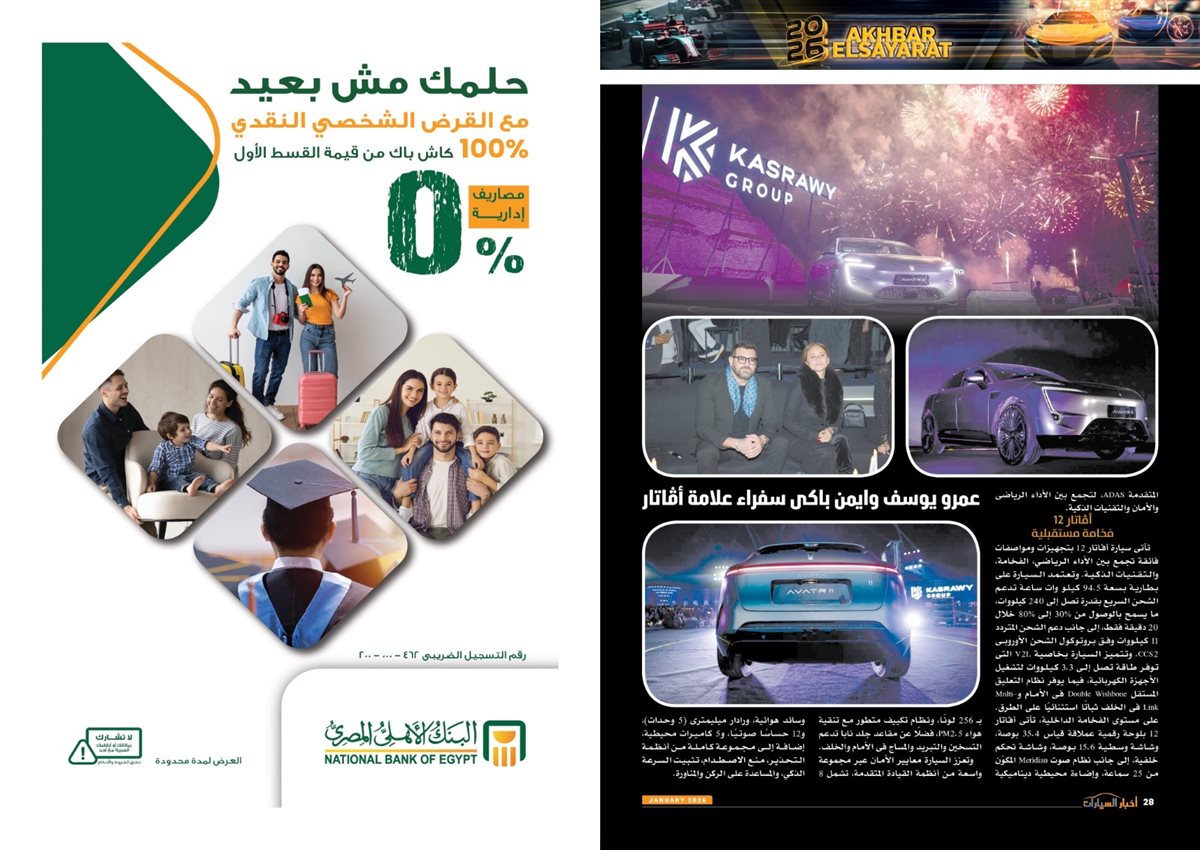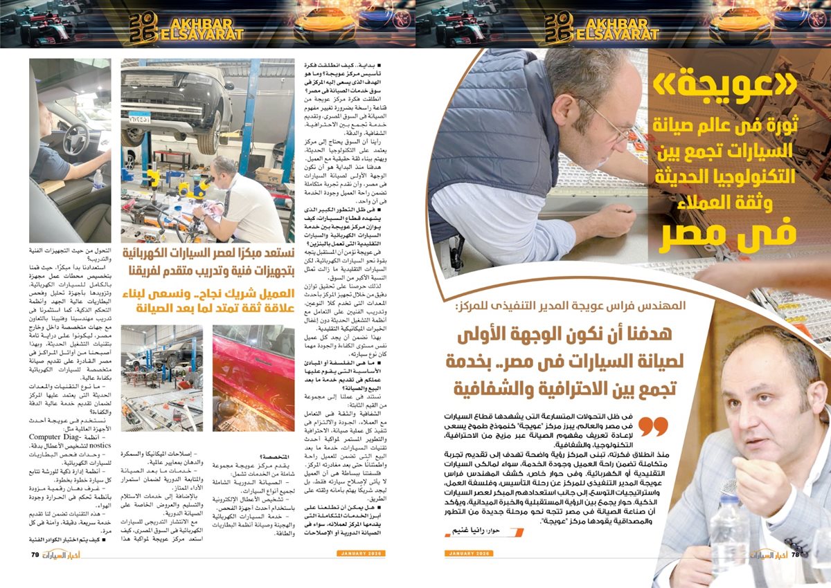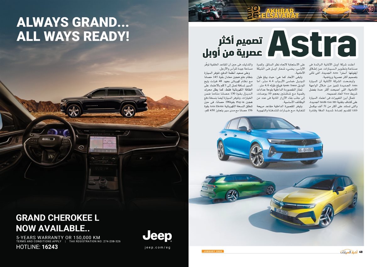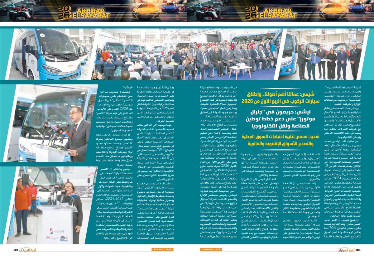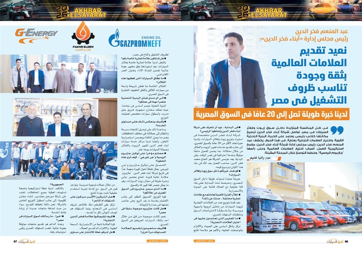 وضم العدد أيضًا تقارير بعنوان قصراوي جروب تبدأ فضلا جديدا في التحول للسيارات الكهربائية الفاخرة، MANEAST ترسخ مكانة SOUEAST وتحقق المركز الخامس فى المبيعات، FBB MOTORS تحتفل بإطلاق «هونشى - »HONGQI للسيارات الفاخرة، ألفا روميو مصر تعلن عمرو نصوحى سفيرًا رسميًا للعلامة فى السوق المصرية، Astra.. تصميم أكثر عصرية من أوبل، شل للزيوت مصر وحسن علام القابضة شراكة استرتيجية لمدة 5 سنوات، motor one 28 عاما من النجاح والتفوق، بودى جروب تعلن مرحلة الانطلاقة الكبرى فى 2026.