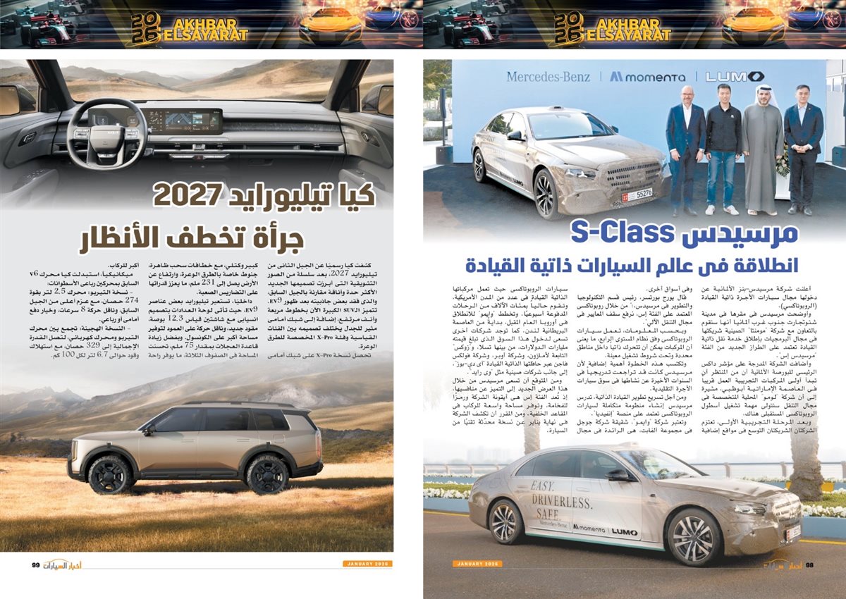 شهد الدليل السنوي لمجلة "أخبار السيارات" العديد من التقارير الشيقة والحوارات الحصرية، بالإضافة إلى أحدث الطرازات، وتوقعات الخبراء لعام 2026.