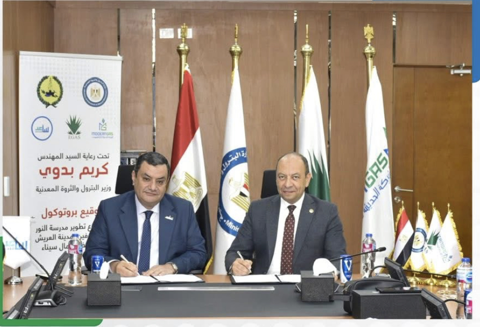في خطوة تعكس إلتزام قطاع البترول المصري بدوره الوطني والتنموي، وتحت مظلة المحاور الستة لإستراتيجية وزارة البترول والثروة المعدنية، استقبل المهندس / وائل جويد رئيس مجلس الإدارة والعضو المنتدب للشركة الحديثة للغاز الطبيعي (مودرن جاس) ؛ الدكتور / أكمل نجاتي - رئيس مجلس أمناء مؤسسة ساعد للتنمية والتطوير ؛ لتوقيع بروتوكول مشترك لتطوير مدرسة النور للمكفوفين بمدينة العريش بمحافظة شمال سيناء وذلك بحضور المهندس / ايهاب حسن مدير عام المسئولية المجتمعية بالشركة المصرية القابضة للغازات الطبيعية ( إيجاس ) و الاستاذ / وائل رشاد - نائب رئيس مجلس أمناء مؤسسة ساعد للتنمية والتطوير والدكتورة / وفاء بخيت – المدير التنفيذي لمؤسسة ساعد للتنمية والتطوير .