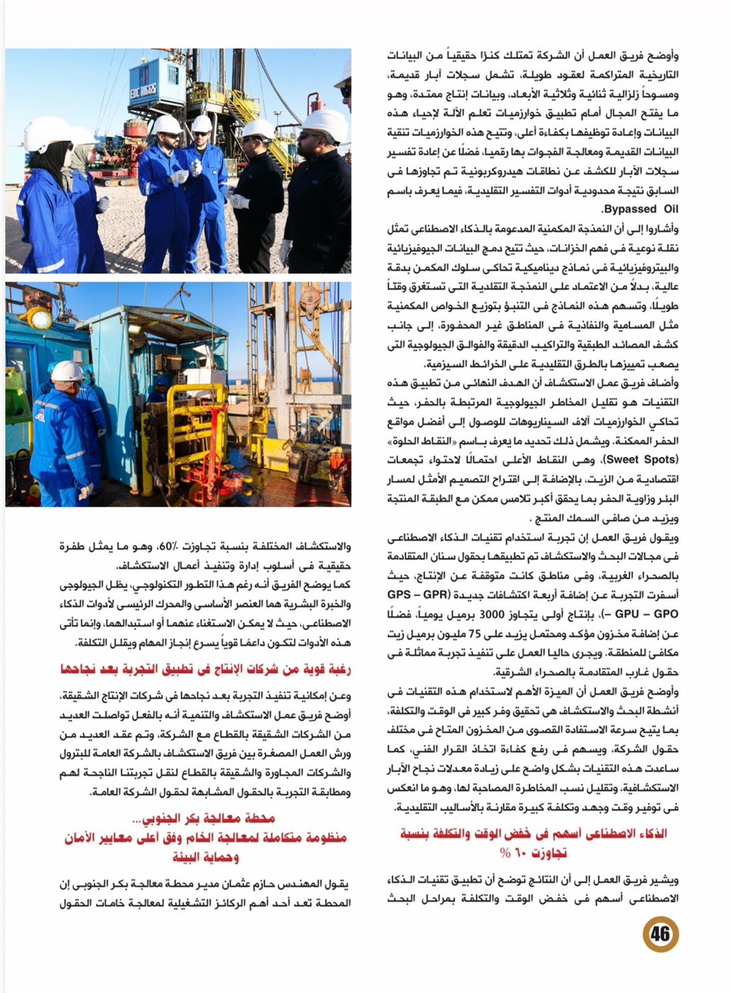 كما نجح الكاتبان في تحقيق توازن واضح بين السرد الميداني والتحليل الفني والبعد الاقتصادي، مقدماً الذكاء الاصطناعي لا كشعار، بل كأداة عملية أثبتت قدرتها على خفض الوقت والتكلفة بأكثر من 60%، وزيادة نسب نجاح الآبار، وإضافة اكتشافات واحتياطيات جديدة.