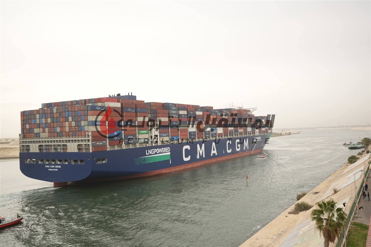 قناة السويس تشهد عبور سفينة الحاويات العملاقة CMA CGM SEINE فى رحلتها الأولى بحمولة 250 ألف طن