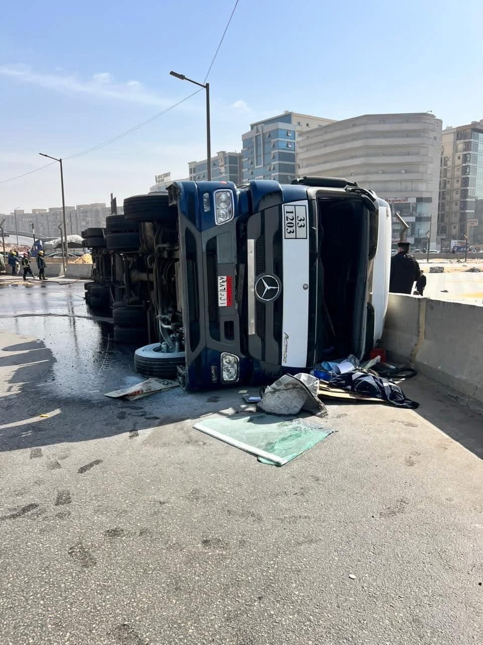 انقلاب سيارة نقل بنزين على مطلع كوبري حسب الله الكفراوي في اتجاه زهراء المعادي