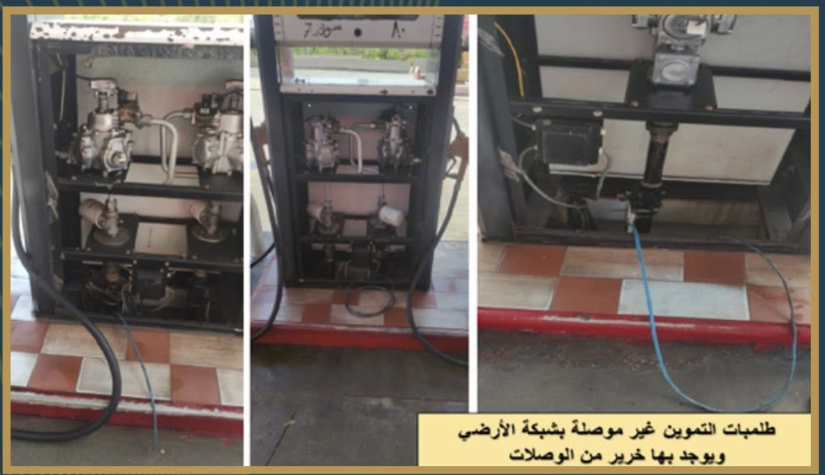 تم المرور والمراجعة على 23 محطة وقود بعدد من المحافظات وتم رصد مخالفات منها انتشار الوصلات الكهربائية العشوائية وعدم تأمين طلمبات التموين ووجود خرير بها وإهمال الصيانة .