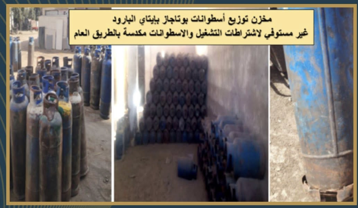 التفتيش علي مخزني توزيع أسطوانات بوتاجاز بمركزي أبو المطامير وإيتاي البارود بمحافظة البحيرة وتبين عدم استيفائهم لاشتراطات الأمان وغياب وسائل الاطفاء بالإضافة لتكديس الأسطوانات بالطريق العام ومنها غير صالحة للتداول وقد تم اخطار الشركة المعنية لسرعة تلافي ذلك .