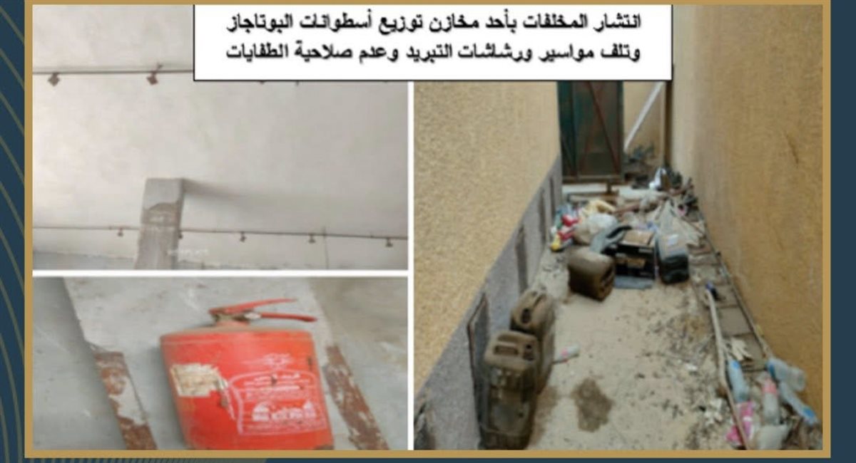 كما تم مراجعة مخزن توزيع أسطوانات بوتاجاز بمركز وادي النطرون، وتبين وجود مخلفات قابلة للاشتعال وتلف مهمات الإطفاء واحتمال سقوط الباب الرئيسي للمخزن لوجود شروخ مع وجود عشوائية في تخزين الاسطوانات ، وتم اخطار الشركة المسئولة لسرعة تلافي الملاحظات.