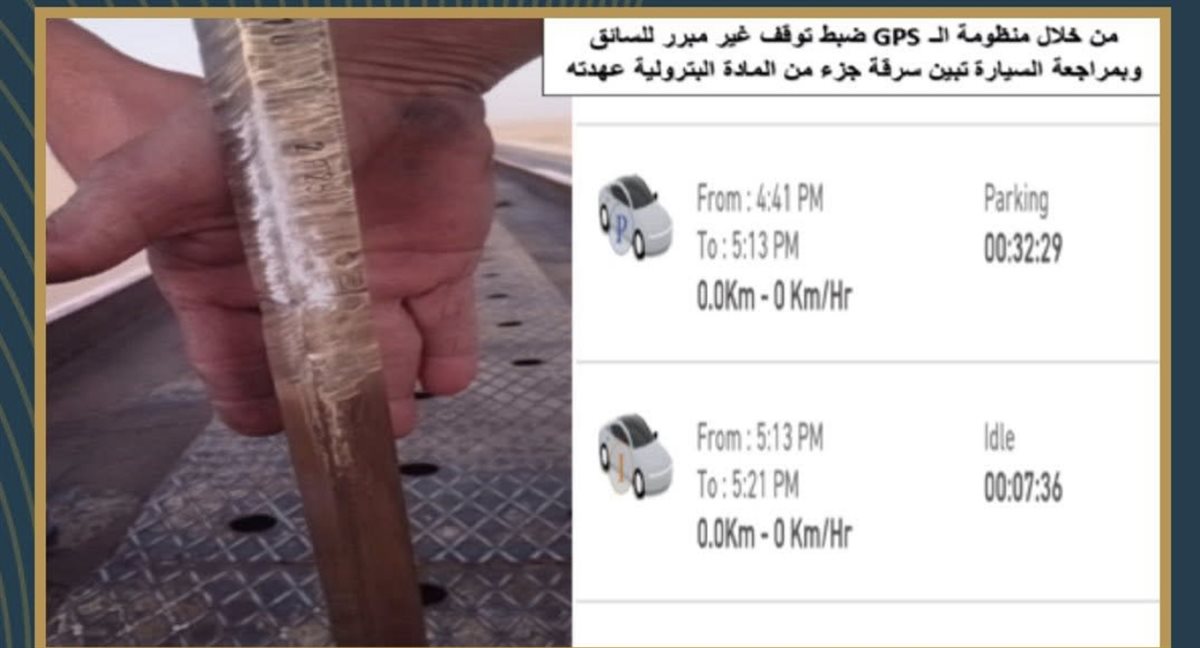 حيث رصدت من خلال منظومة التتبع GPS سائق احدى السيارات الصهريجية المحملة بالسولار خلال توقفه لمدة ساعة بمنطقة مجهولة قبل التوجه للعميل بمنطقة الفرافرة وتم التواصل مع العميل مستلم الشحنة في حينه والتأكد من قيام السائق بسرقة جزء من الحمولة عهدته ، كما تم ضبط سائق سيارة صهريجية بأحد مستودعات الجنوب تلاعب بوصلات محابس السيارة لحبس جزء من الحمولة بغرض السرقة وتم ضبطه قبل الخروج ، وتم اتخاذ الإجراءات القانونية تجاه السائقين .