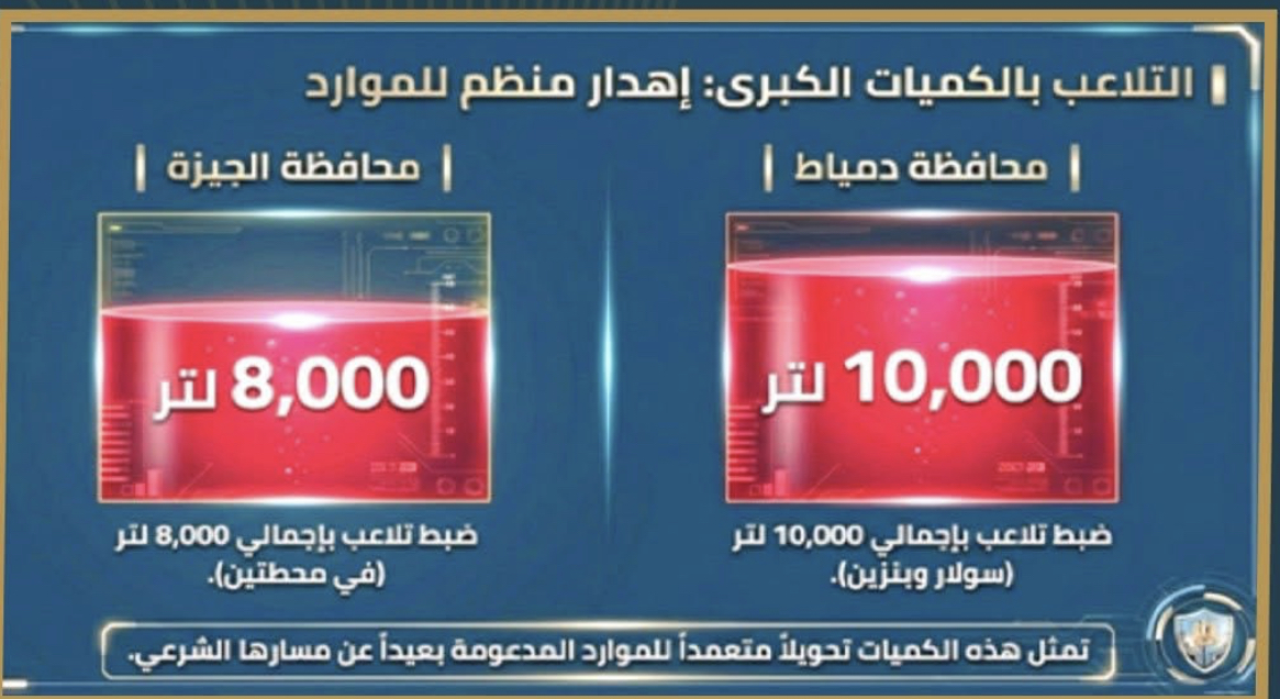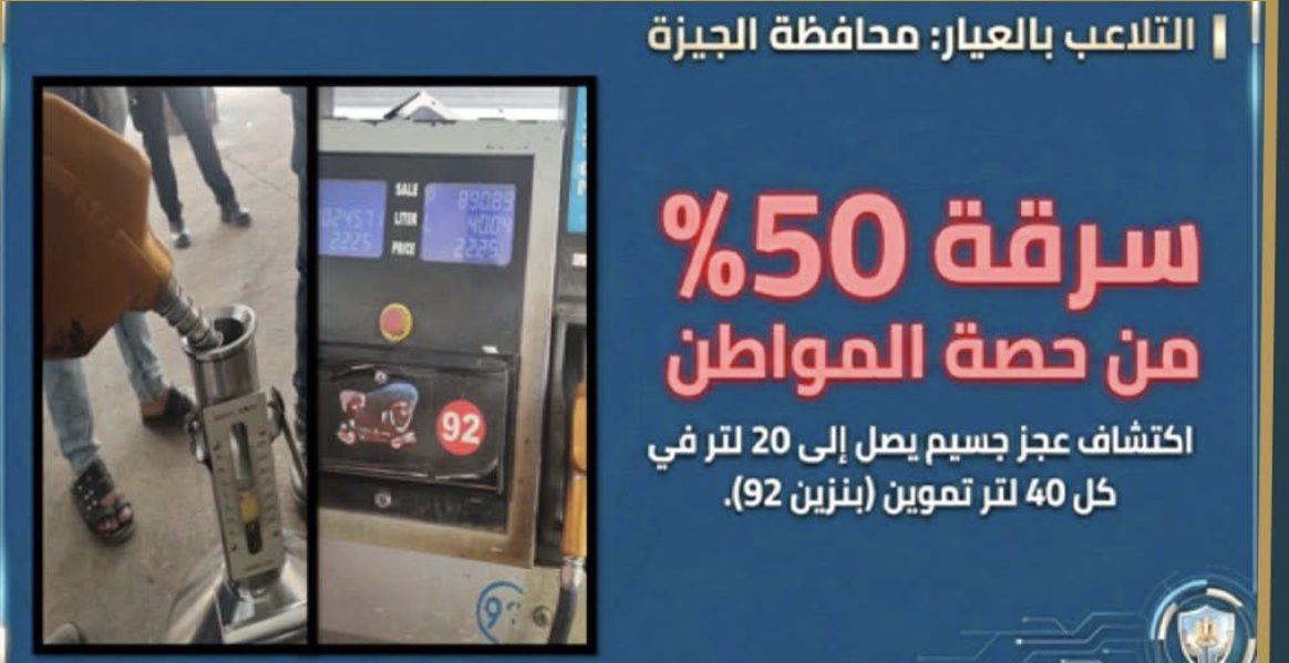 وفي دمياط، تم ضبط تلاعب في كميات التداول بإجمالي 10 آلاف لتر سولار وبنزين ، فيما ضبطت في محافظة الجيزة تلاعباً بنحو 8 آلاف لتر بمحطتي وقود، إلى جانب اكتشاف تلاعب في عيارات مسدسات تموين بنزين 92 للجمهور، حيث تبين وجود عجز يصل إلى 20 لتر في كل 40 لتر تموين، وتم على الفور تجنيب المسدسات المخالفة وتحرير محاضر رسمية بالواقعة.