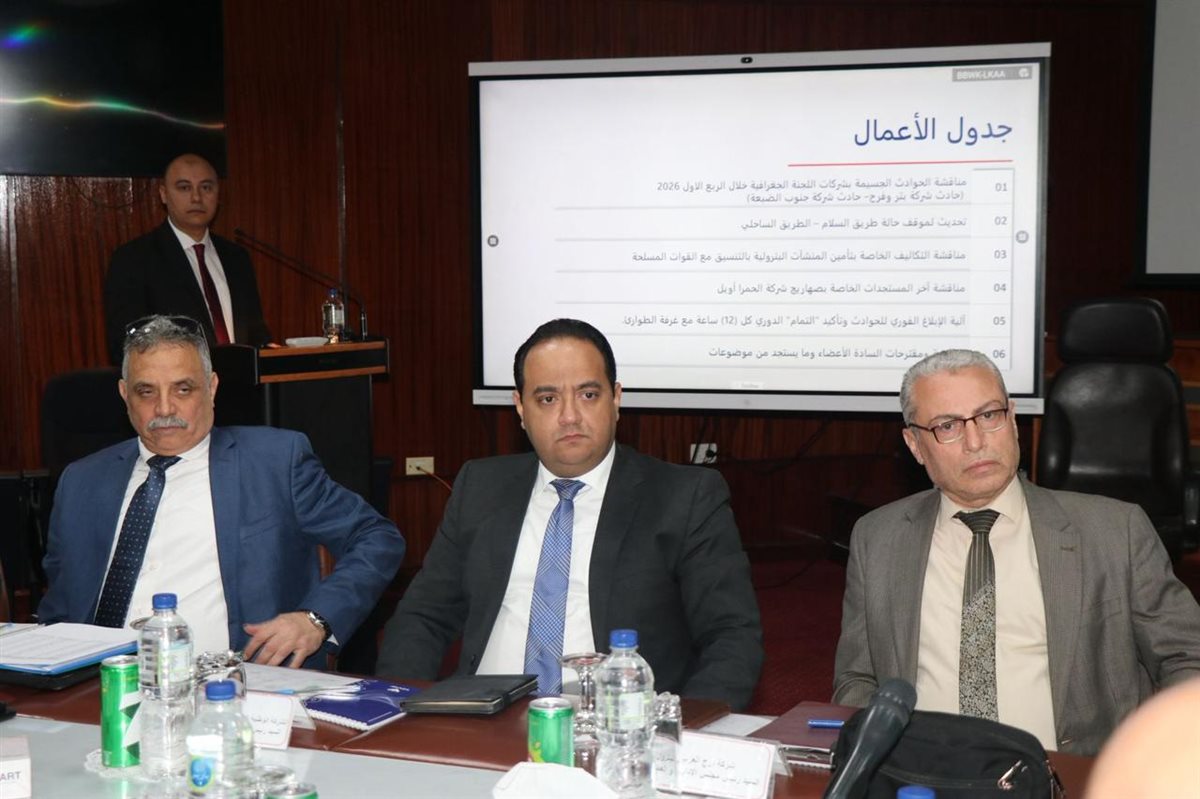 وناقش الاجتماع عدداً من الملفات الاستراتيجية والحيوية، من أبرزها سبل تعزيز منظومة السلامة والصحة المهنية، واستعراض الدروس المستفادة من الحوادث لضمان بيئة عمل آمنة. كما تم استعراض مستجدات تطوير البنية التحتية بالمنطقة، وعلى رأسها مشروع "طريق السلام – الطريق الساحلي"، إلى جانب بحث آليات تمويل تأمين المنشآت البترولية بالتنسيق مع القوات المسلحة، ومتابعة تطورات منطقة الحمرا أويل.