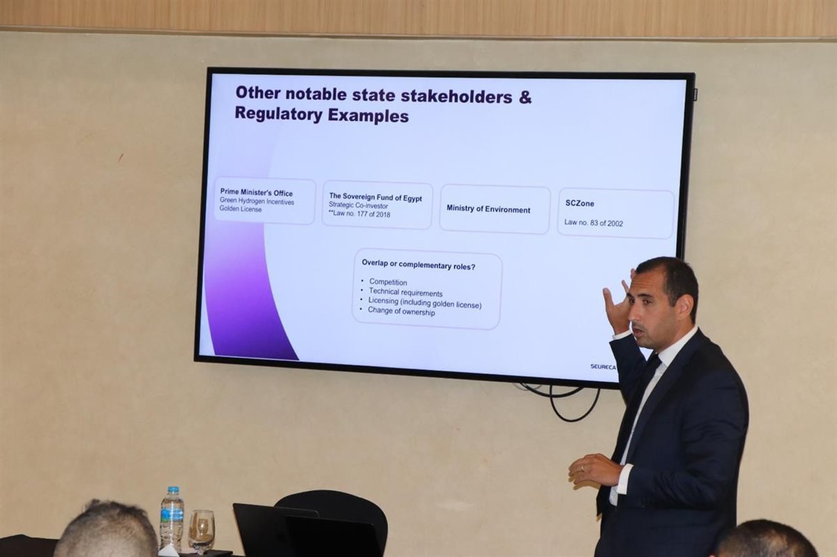 وقدم الأستاذ محمد الأهواني من الفريق القانوني عرضًا حول أدوار ومسؤوليات الأطراف المختلفة، بهدف تجنب أي تداخلات أو فجوات تنظيمية قد تؤثر على كفاءة المنظومة.
