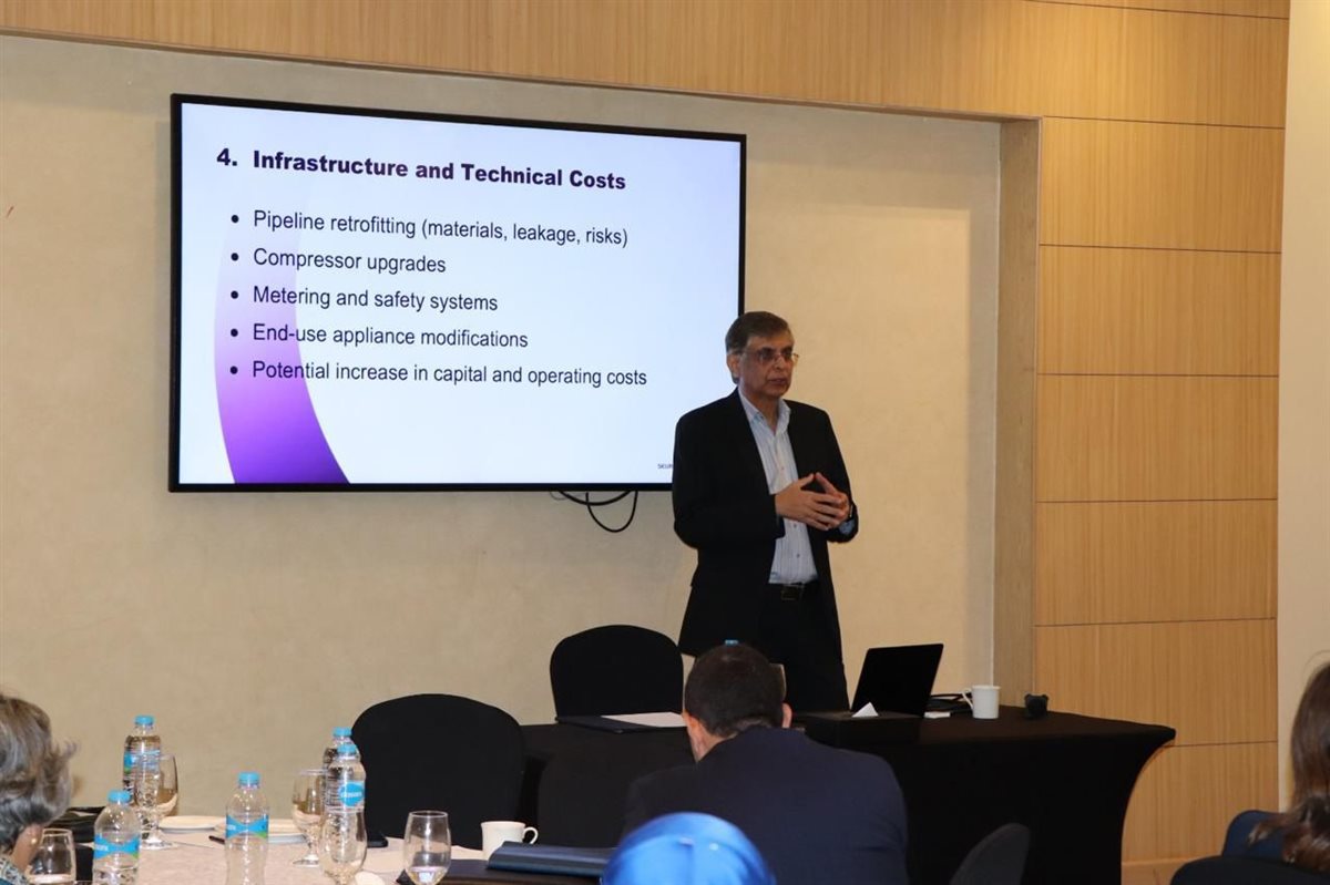 كما شهدت الجلسات الفنية مشاركة كل من المهندس أرشد صوفي والمهندس مدحت الدري (METAS Energy)، إلى جانب المهندس خالد خلاف – مدير عام التخطيط الفني – والمهندسة مريم خالد من جهاز تنظيم أنشطة سوق الغاز، حيث تم تناول جاهزية البنية التحتية، ومتطلبات دمج الهيدروجين في الشبكات، والالتزام بالأكواد التنظيمية، فضلًا عن استخدام أدوات المحاكاة الهيدروليكية لتقييم كفاءة النقل.